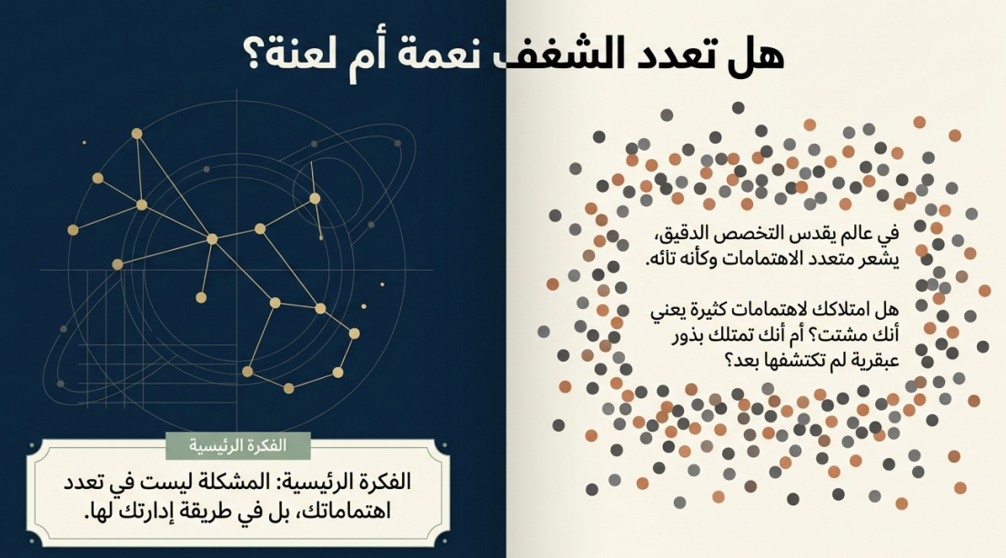 🧠 هل تعدد الشغف يدمرك… أم يصنع منك عبقري؟ / الدليل العملي لإنهاء التشتت وبناء مسار واضح بدون التخلي عن اهتماماتك