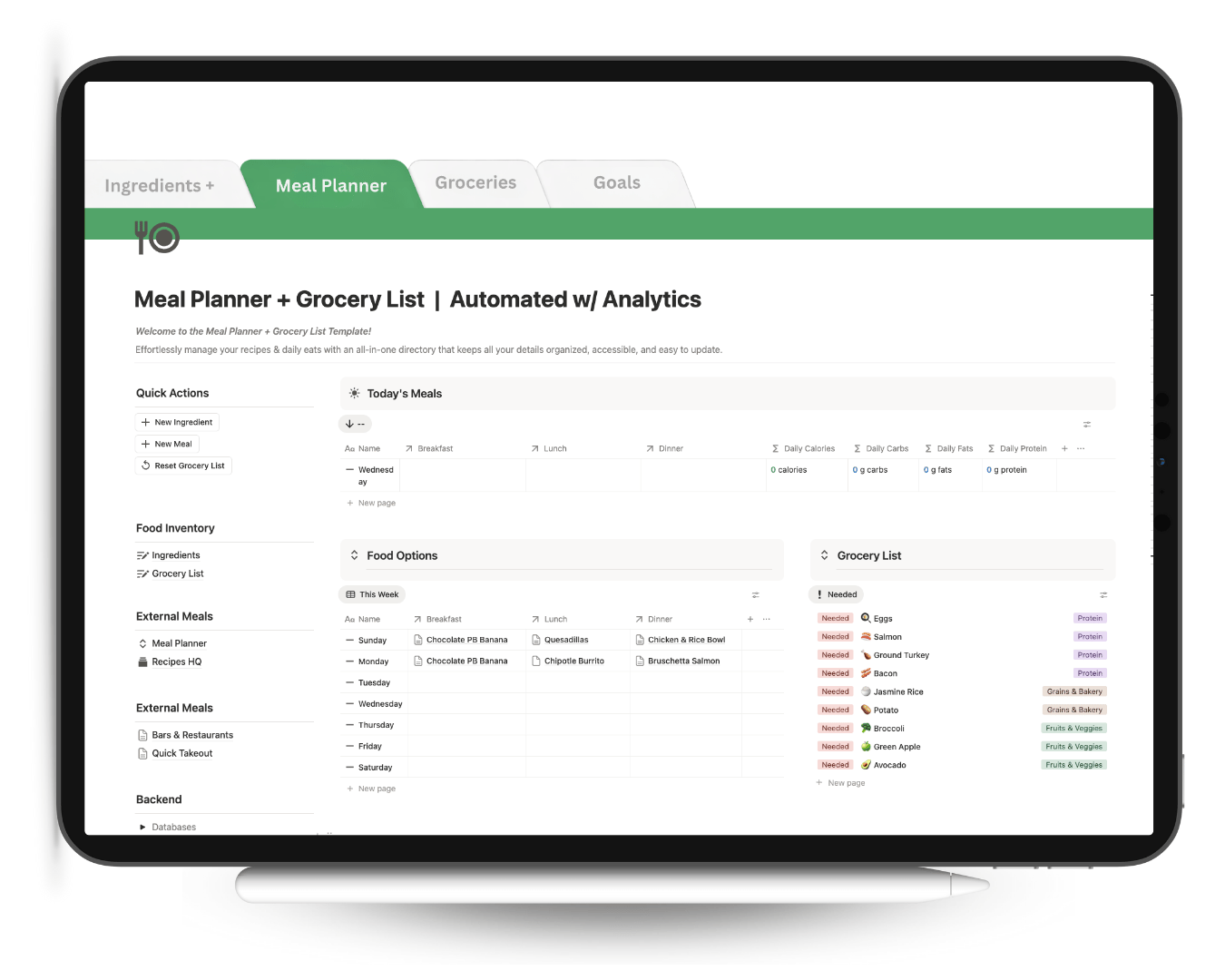 - Automatically organize meals into a clear grocery list