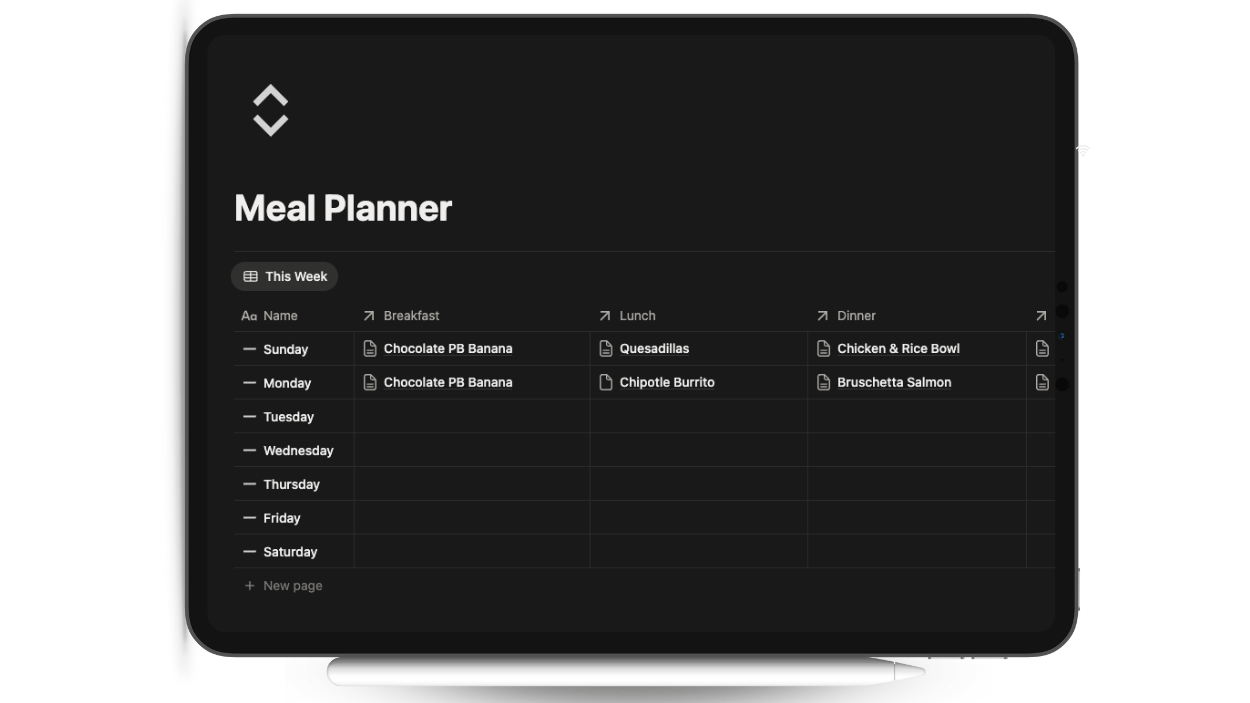 - Plan meals ahead of time with a simple, flexible layout