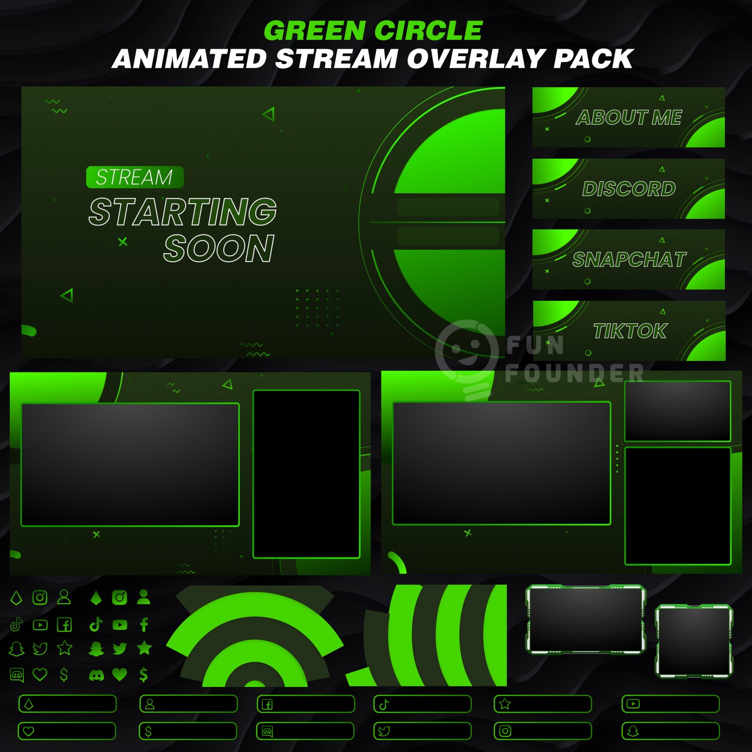 Green Circle Animated Stream Overlay Pack | Twitch Overlay Package | Animated Stream Overlay Package | Green Twitch Overlay | Twitch Panels | Youtube Stream Overlay Pack