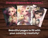 24 Girl and her Bird Cute Fairy Anime Coloring Page Book, Adults + kids- Instant Download Grayscale Coloring Page - Gift, Printable Art PDF