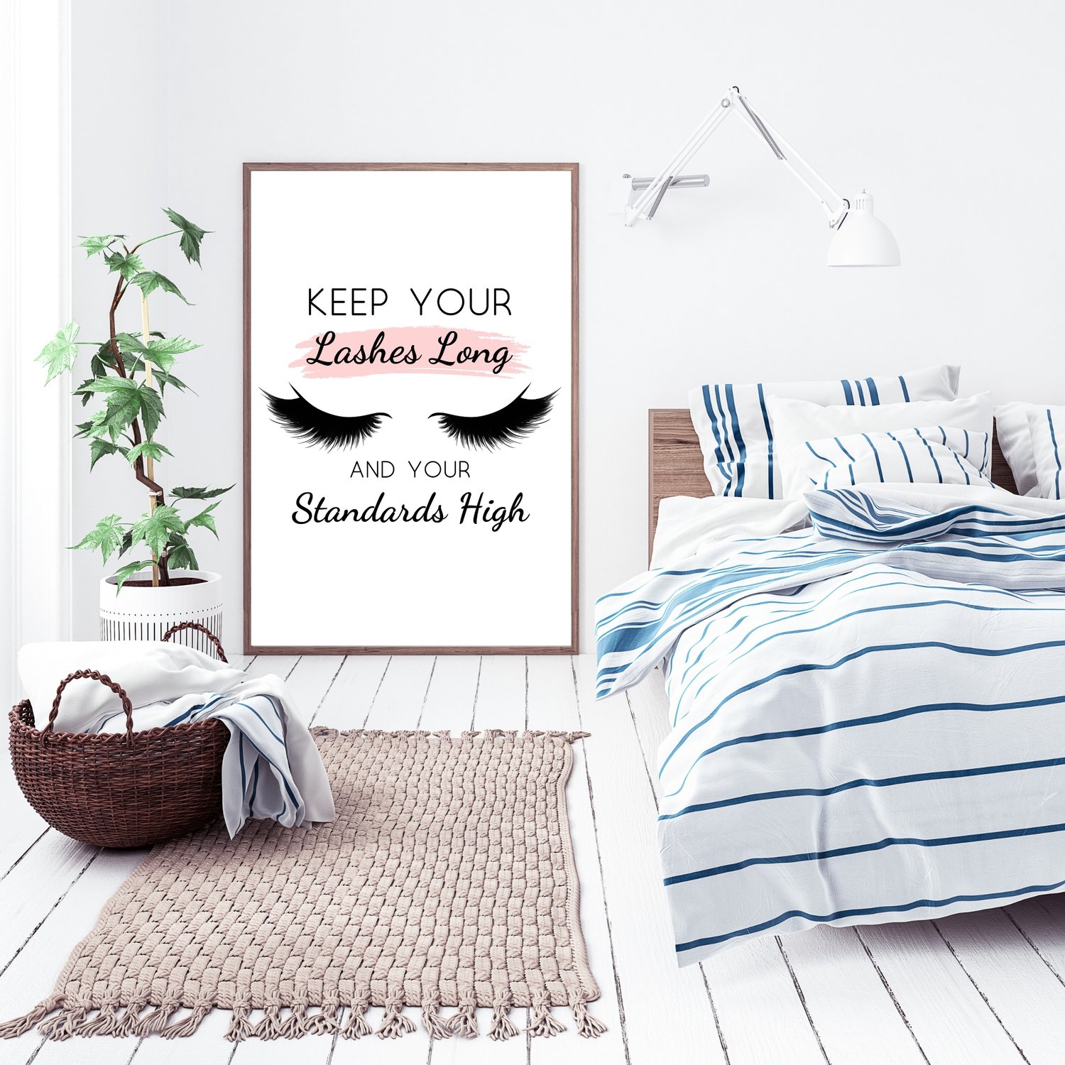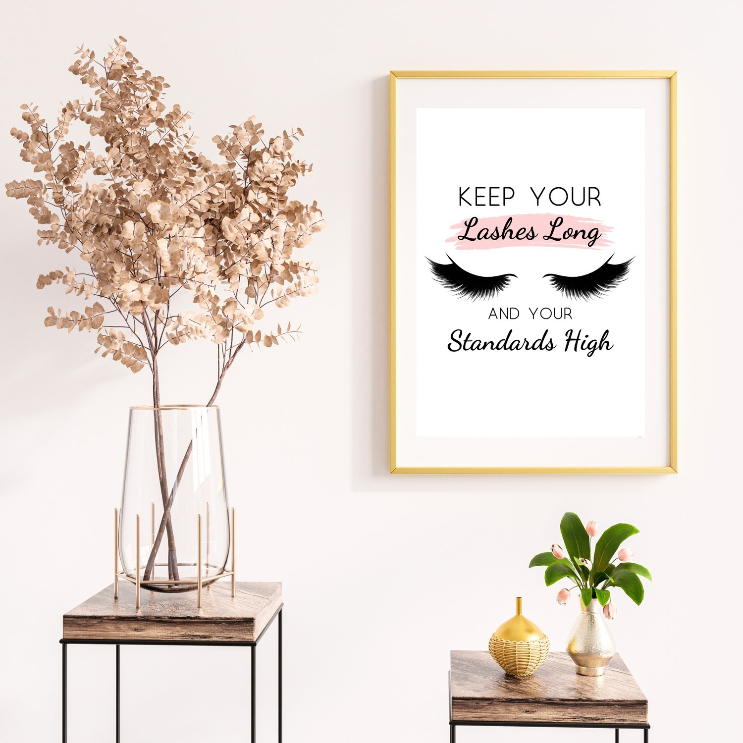 Keep Your Lashes Long and Your Standards High - Boss Babe Wall Art, Girl Boss Printable, Feminine Office Decor, Eyelashes Art, Motivational, Inspirational, Empowering Digital Print