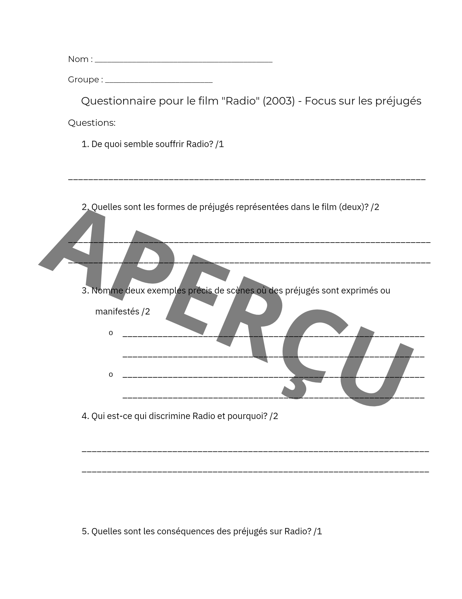 Les élèves seront amener à visionner le film << Radio >> et répondre à un questionnaire en lien avec les préjugés et l'inclusion sociale.