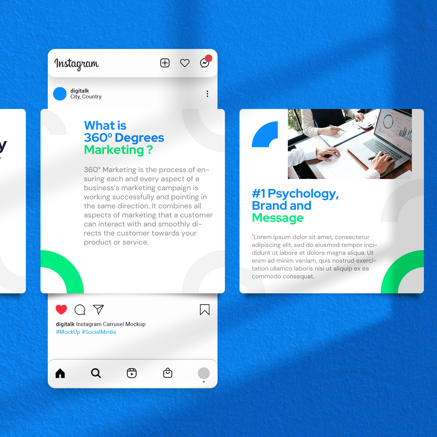 - 2 Instagram Carousel Templates: Ideal for sharing detailed content like step-by-step marketing strategies, tips, and multi-part campaign case studies in a swipeable format.