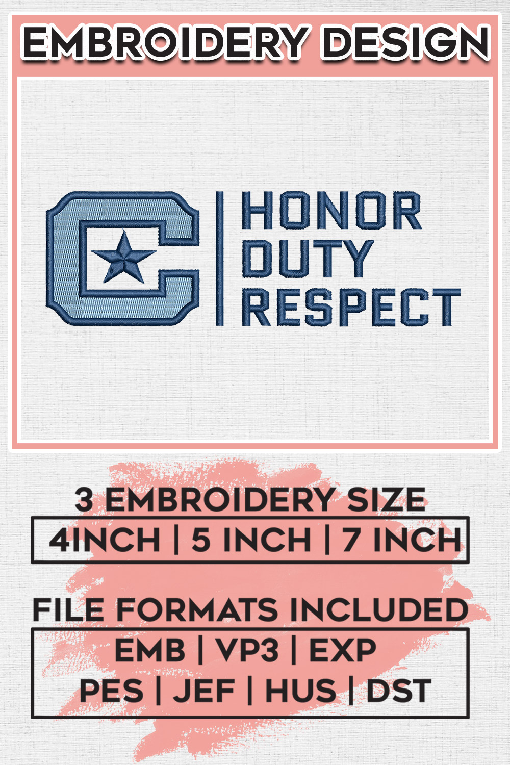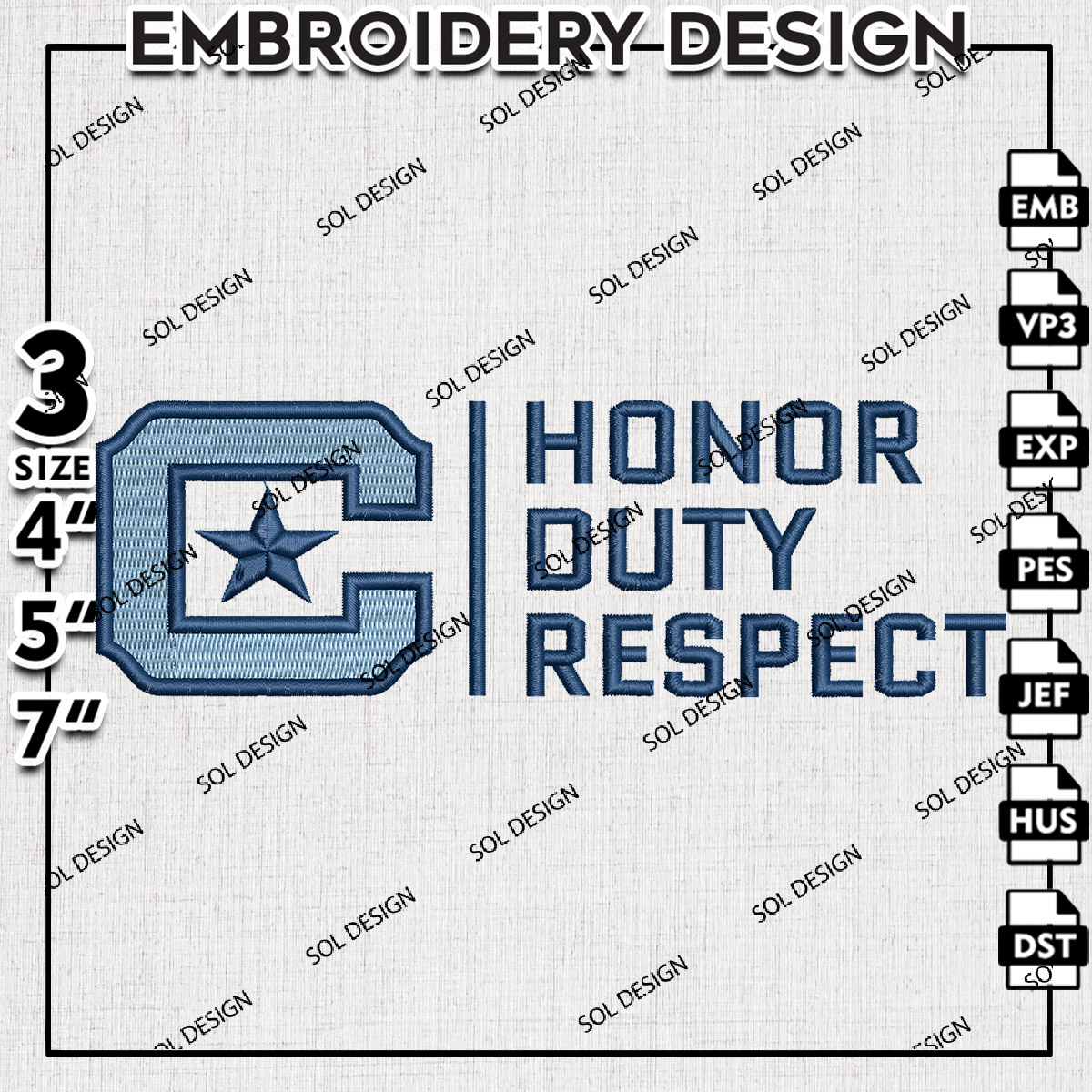 NCAA Honor Duty Respect Football Team Logo Embroidery Files, NCAA The Citadel Bulldogs Team Embroidery, NCAA College Football Teams, The Citadel Team Emroidery, 3 sizes, Machine embroidery designs, Digital Download