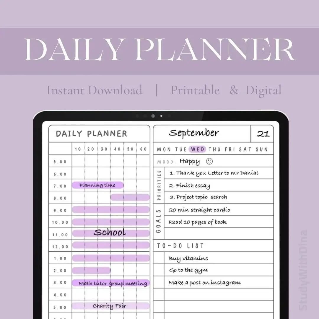 This is a printable daily planner to help you achieve goals, manage your life and be more productive
