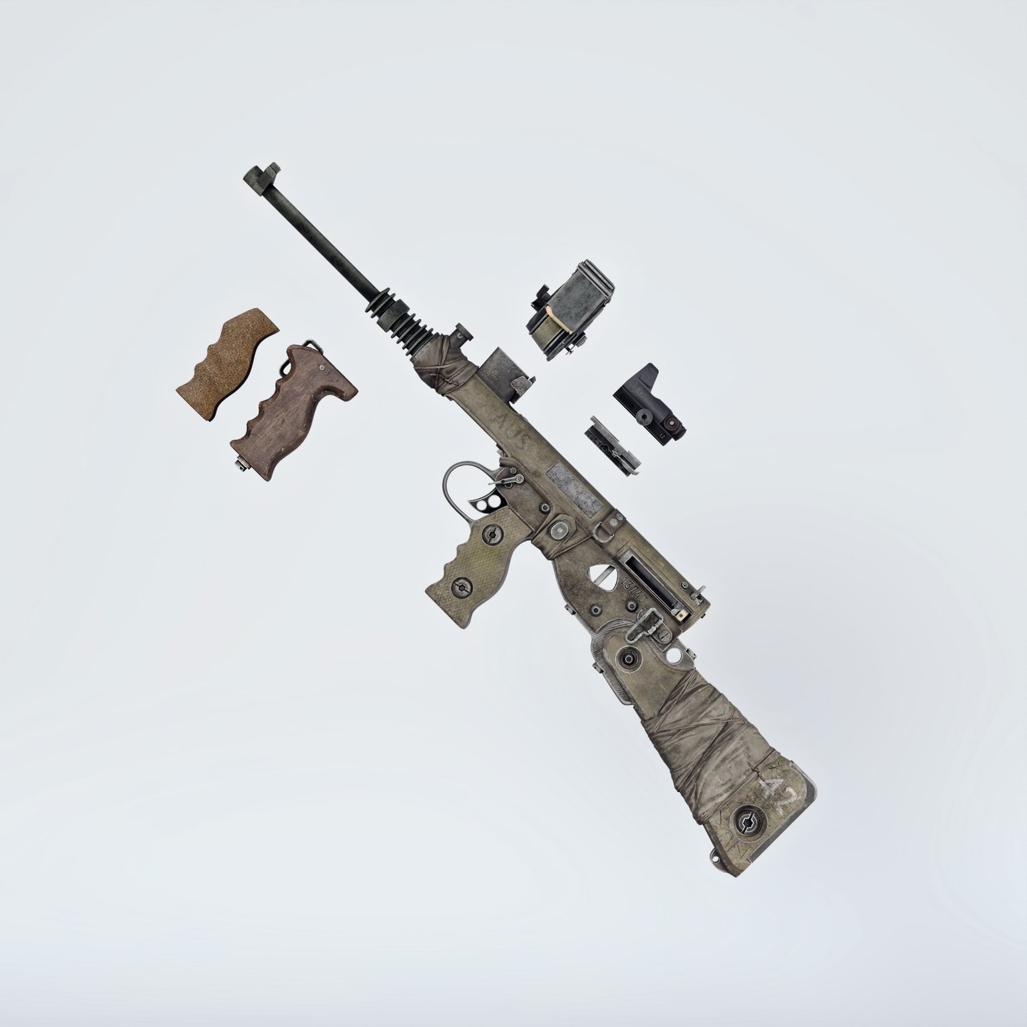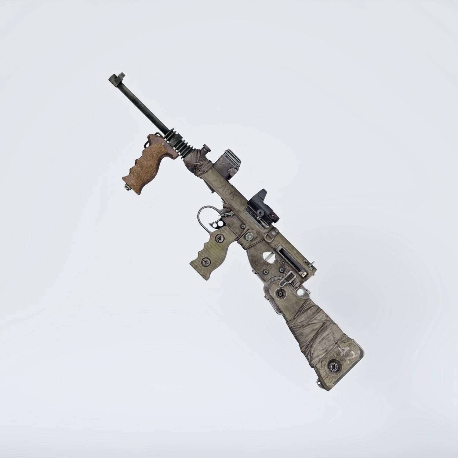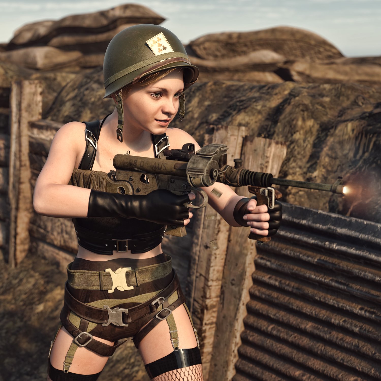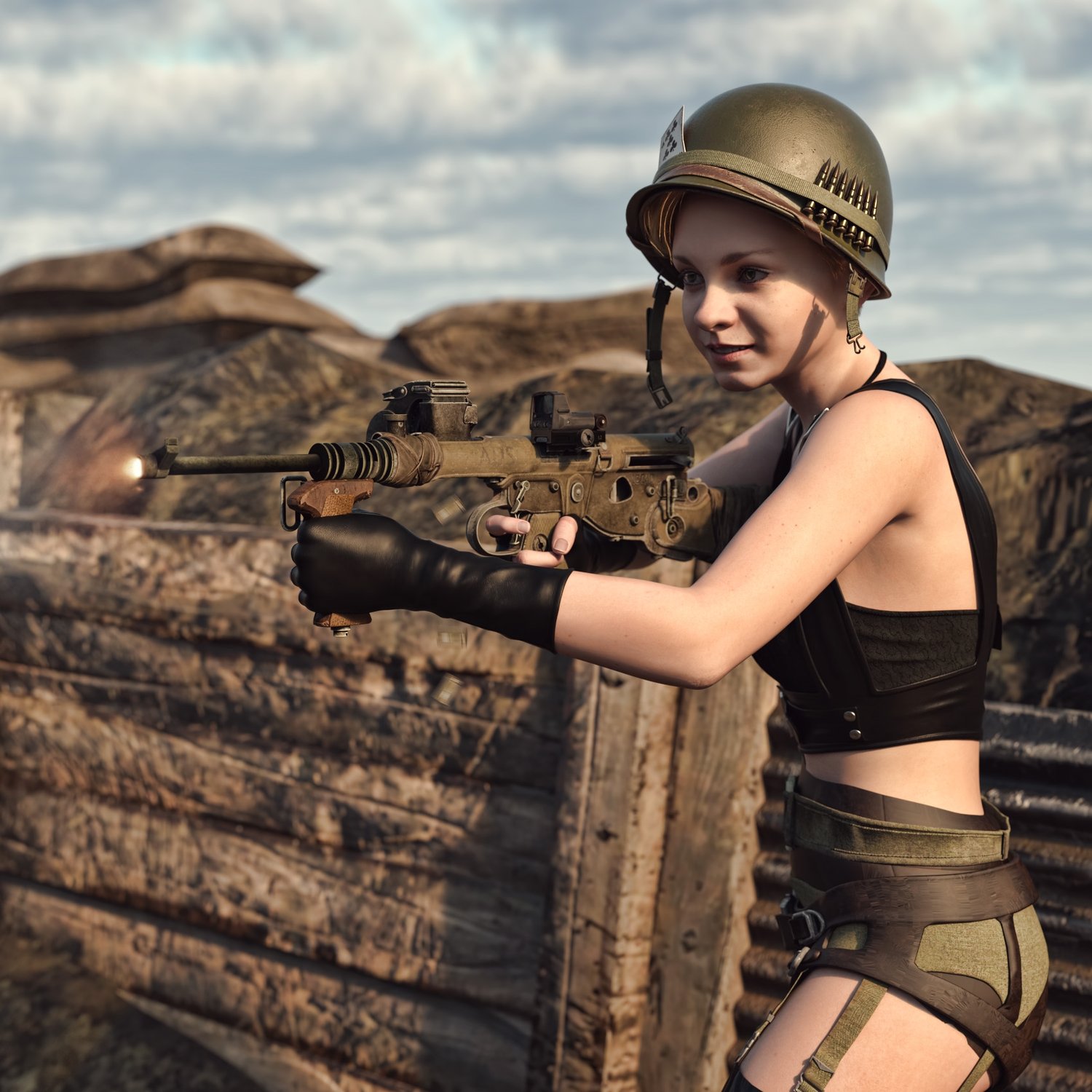 One of the weirdest guns of WW2 and weirdest SMGs ever, now in a bit different iteration. Despite its looks, was very successful and loved by soldiers. Entering service in WW2 by Australian forces, it went out of service only in 70s. Was also in use by some of the pacific countries. Rigged and converted for use with DAZ. Trigger, safety, bolt, etc also rigged for more realistic pictures. Includes an optic sight for funs and various porpoises and pictures (can be hidden and used as a regular rifle). This version also includes a drum mag for more fire power, and different looks than a standard one.