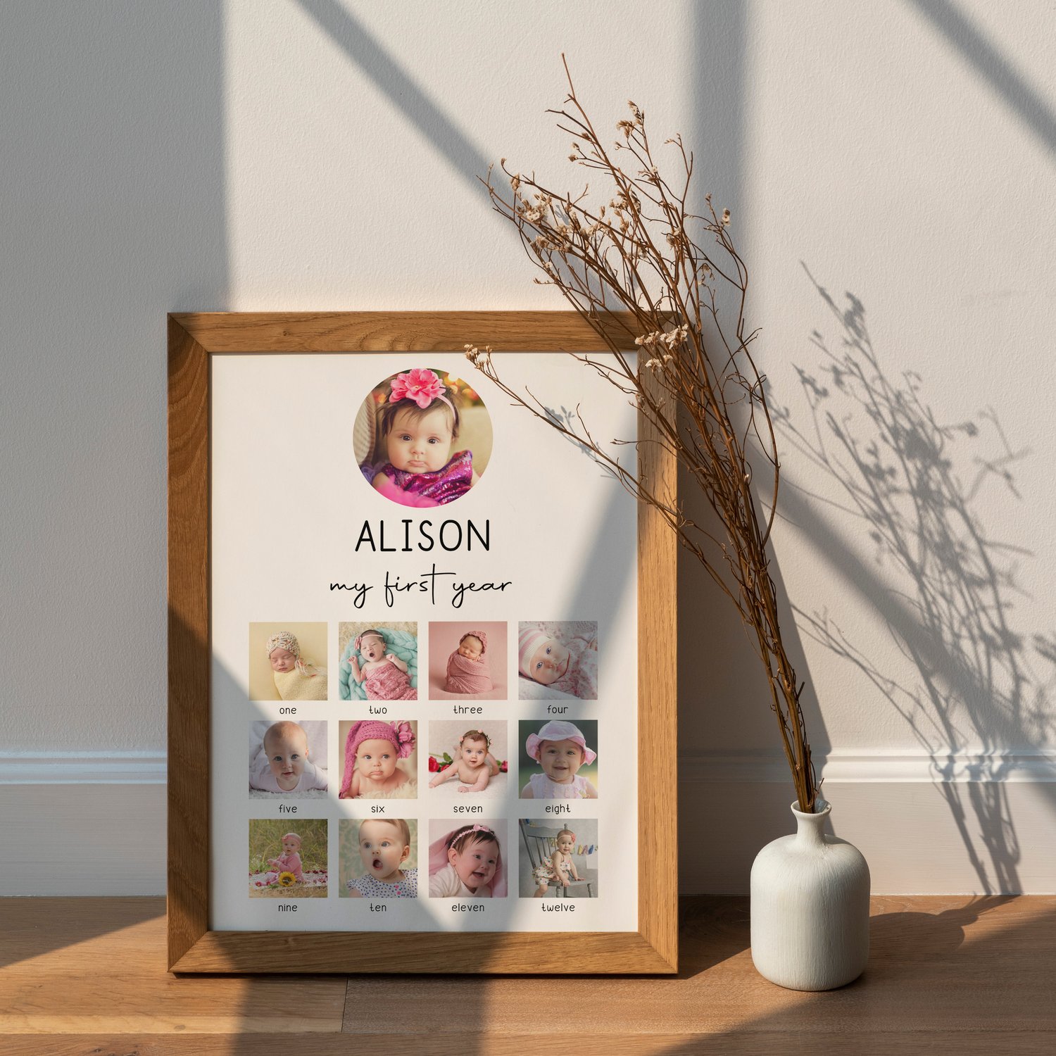 EDITABLE Custom Baby 1st birthday Photo Collage Template | 1 year Milestone | 12 months photo | Baby room decor