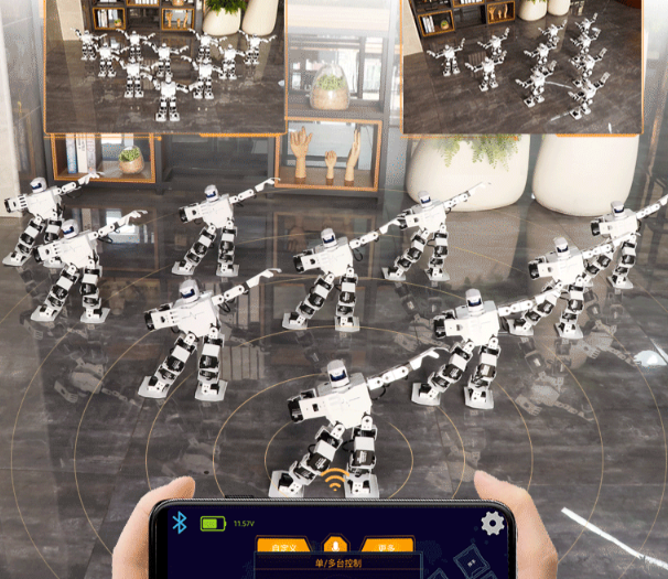 APP Group Control: H5S has a built-in wireless communication module that supports many robots to perform simultaneously. The performance can be easily achieved through the mobile phone APP.