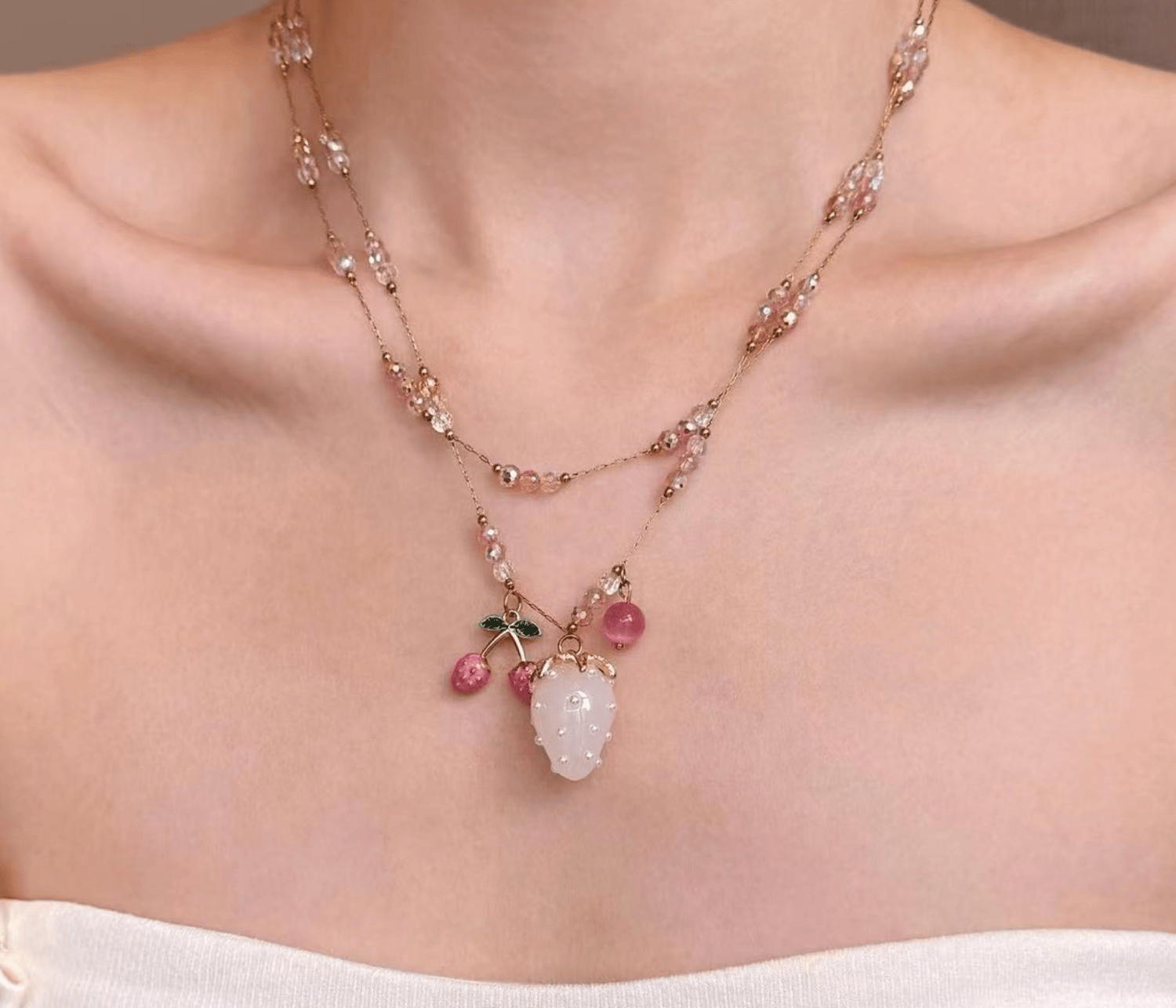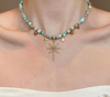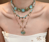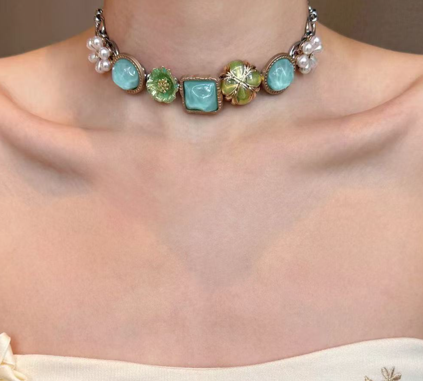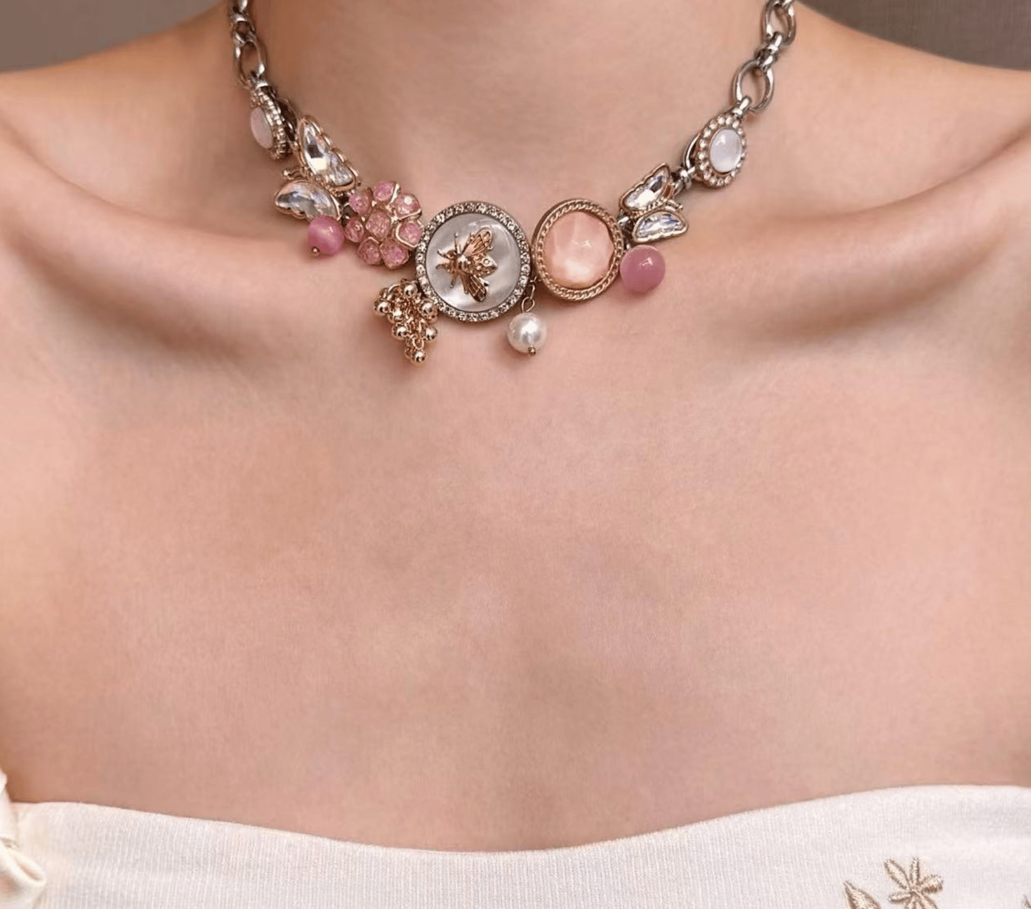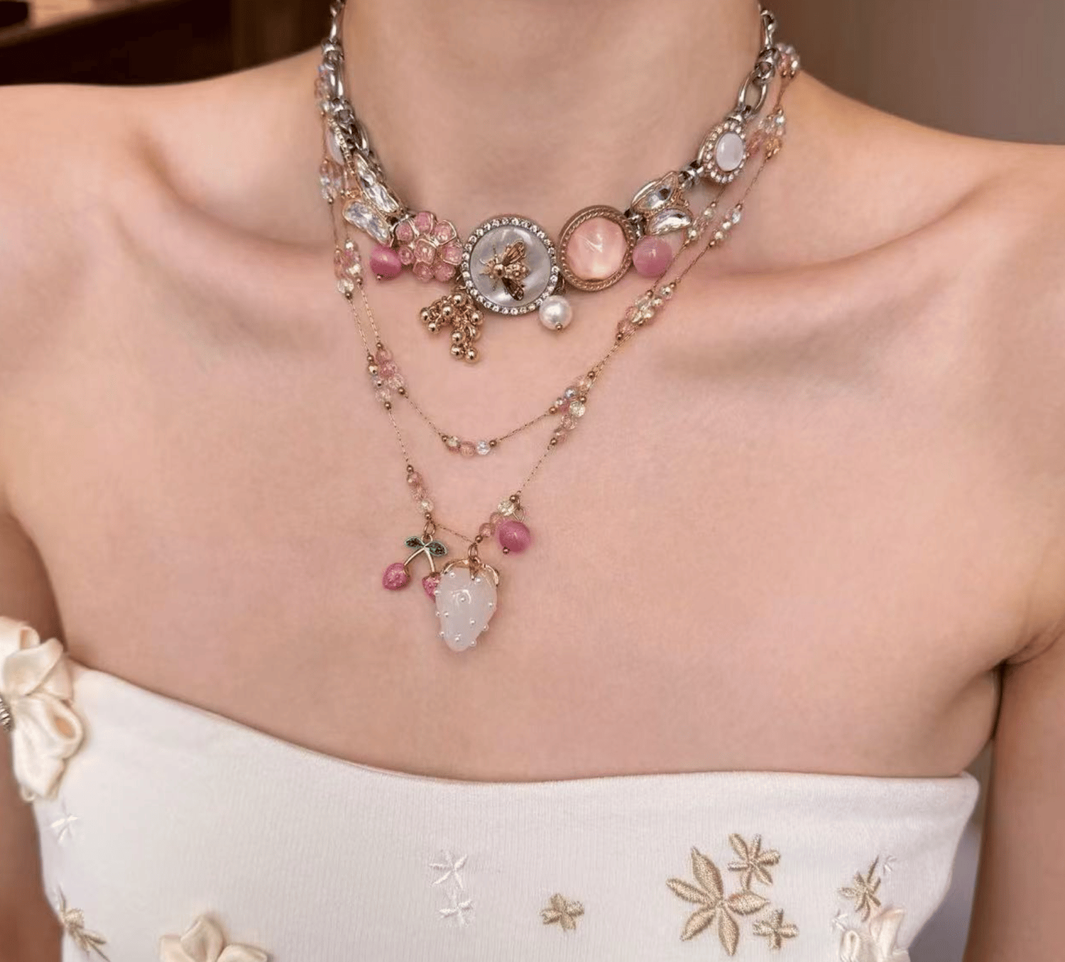 "Iris" Vintage star bead flower cherry strawberry blue pink layered choker