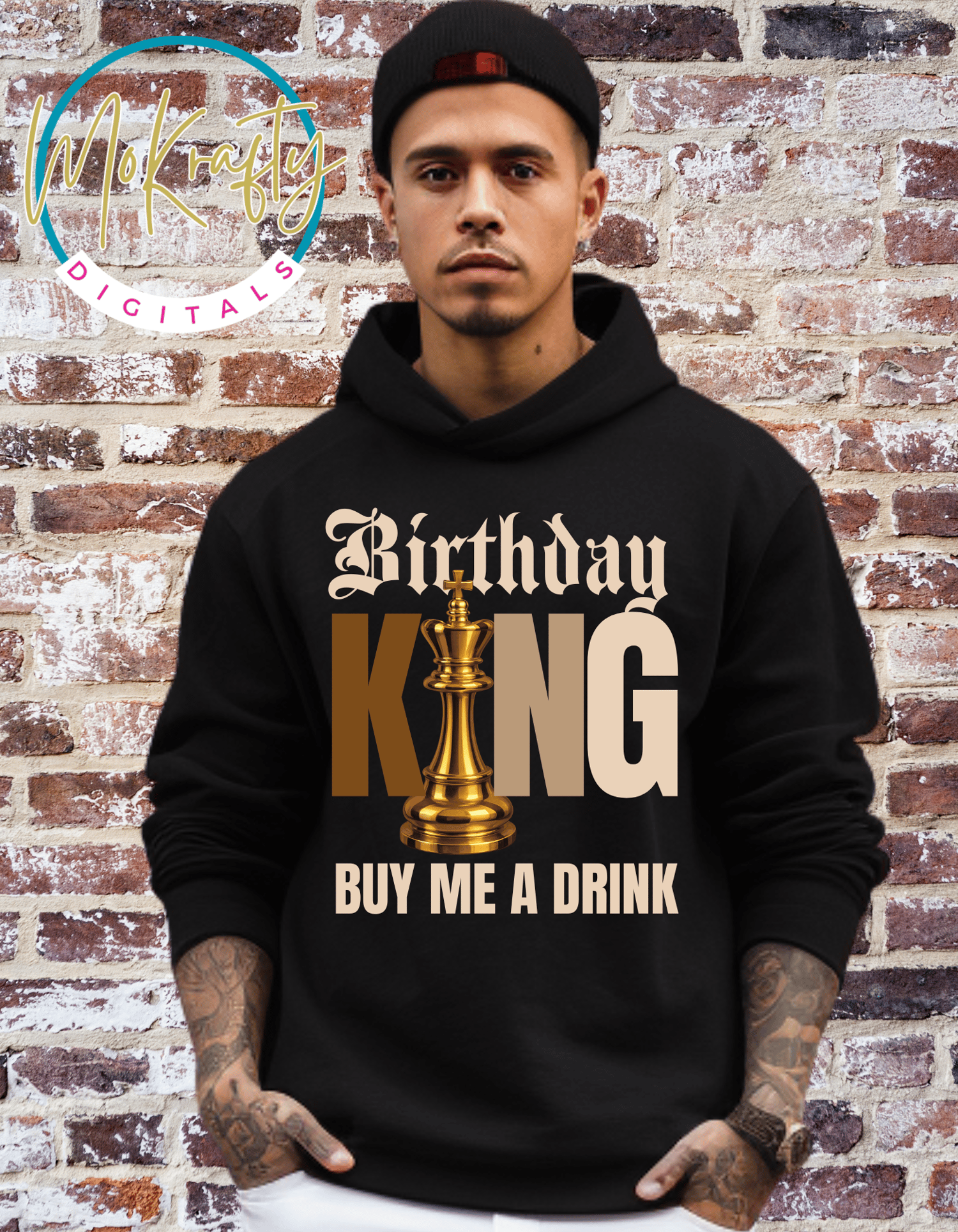 Step into birthday boss energy with this Birthday King – Buy Me a Drink digital PNG. Designed with luxury vibes and bold typography, this graphic is perfect for birthday shirts, hoodies, tumblers, and party gear. Ideal for personal projects or small business physical product sales.