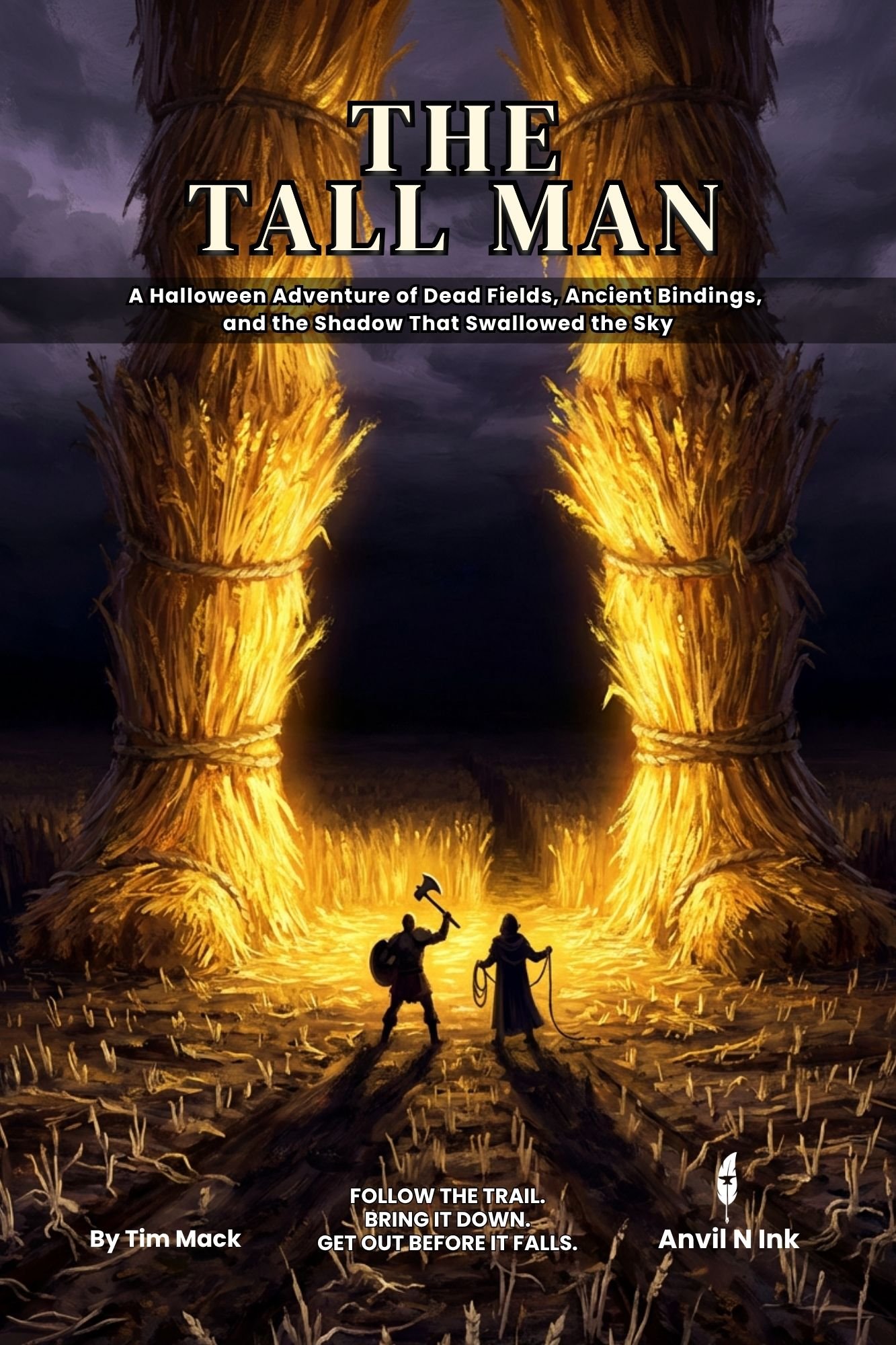 The Tall Man is a complete 5E Halloween adventure for 2-3 players, designed to run in 2-3 hours with zero preparation. A week after the destruction of Valdrus the Pale, the necrotic shockwave that escaped the crypt has been traveling north along old ley lines — and it has found something to inhabit. An ancient road-guardian scarecrow, bound to a post at the edge of a farming settlement by hedge magic generations ago, has had its protective binding inverted. It is consuming the surrounding wheat fields. It is building itself. By the time players arrive in Dunhall, it is one hundred feet tall and still rising.