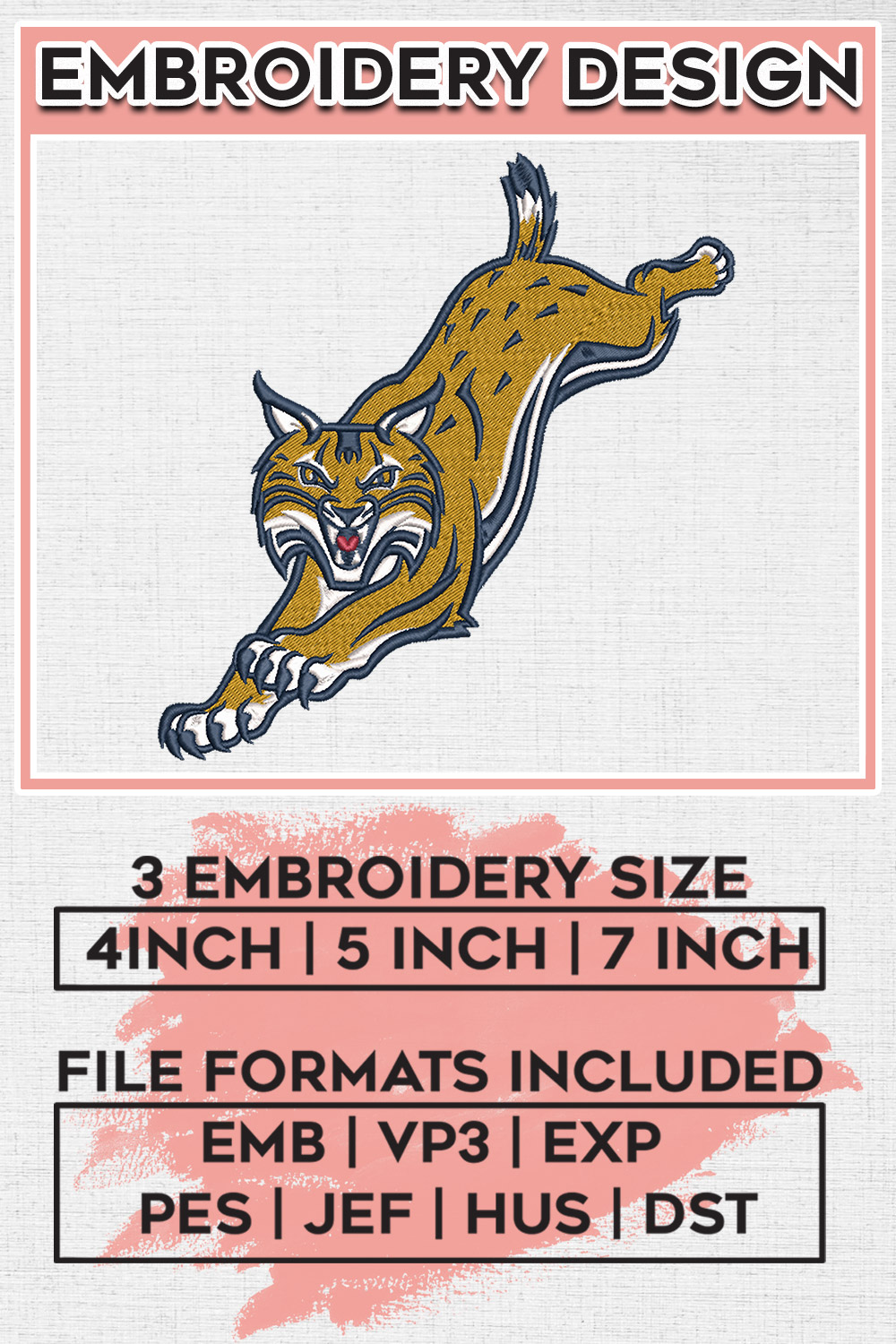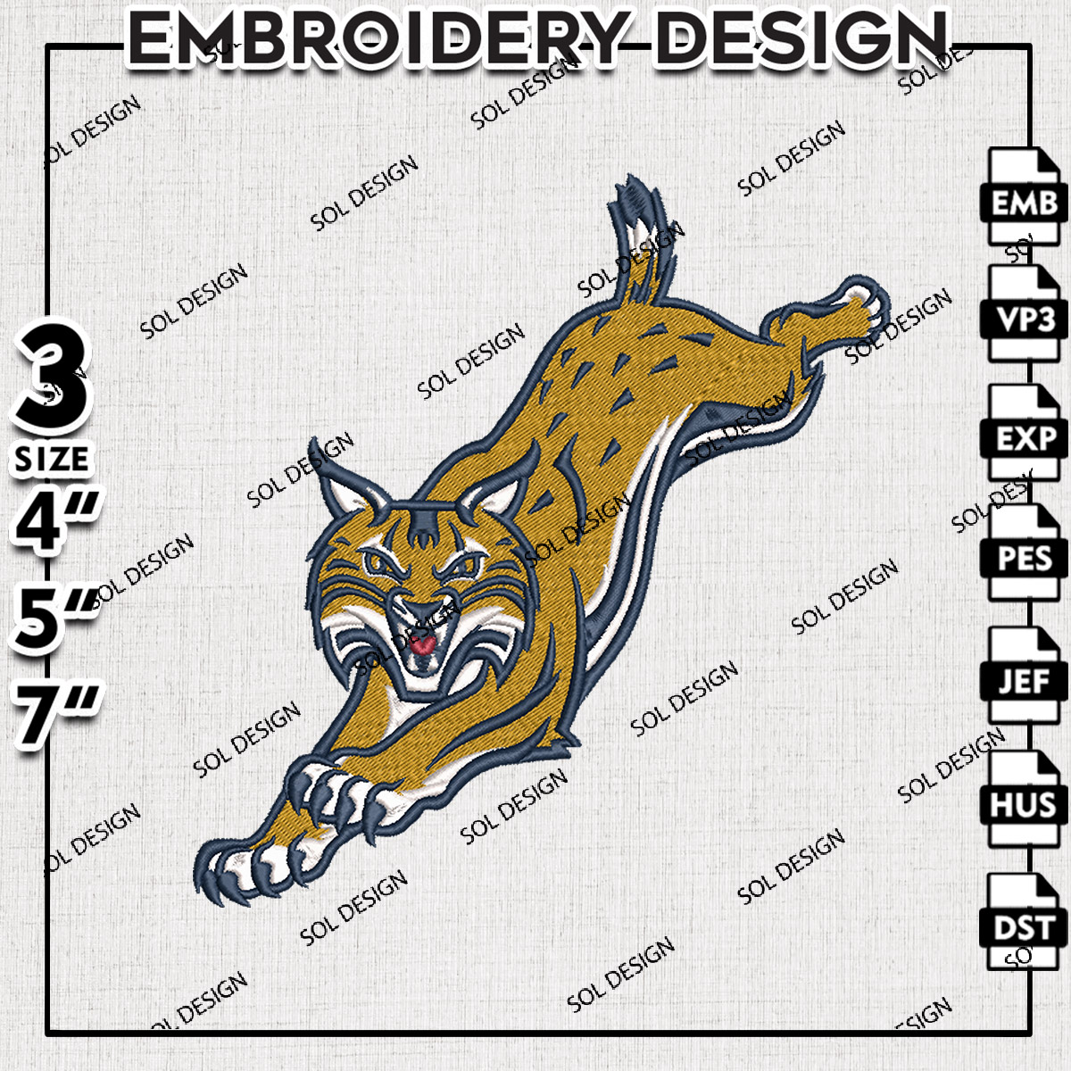 Ncaa Bobcats Mascot Embroidery Designs, NCAA Quinnipiac Bobcats Machine Embroidery Files, NCAA Logo embroidery designs, Ncaa Bobcats Logo, Digital Download