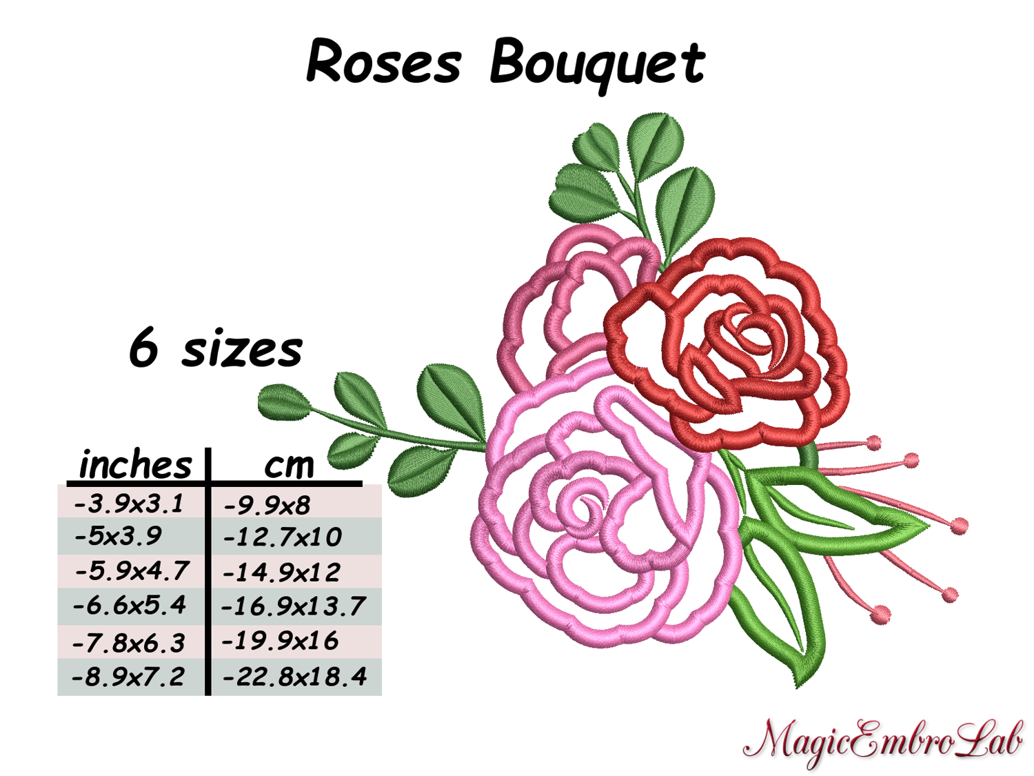 Rose Bouquet APPLIQUE, 6 sizes, Instant Download