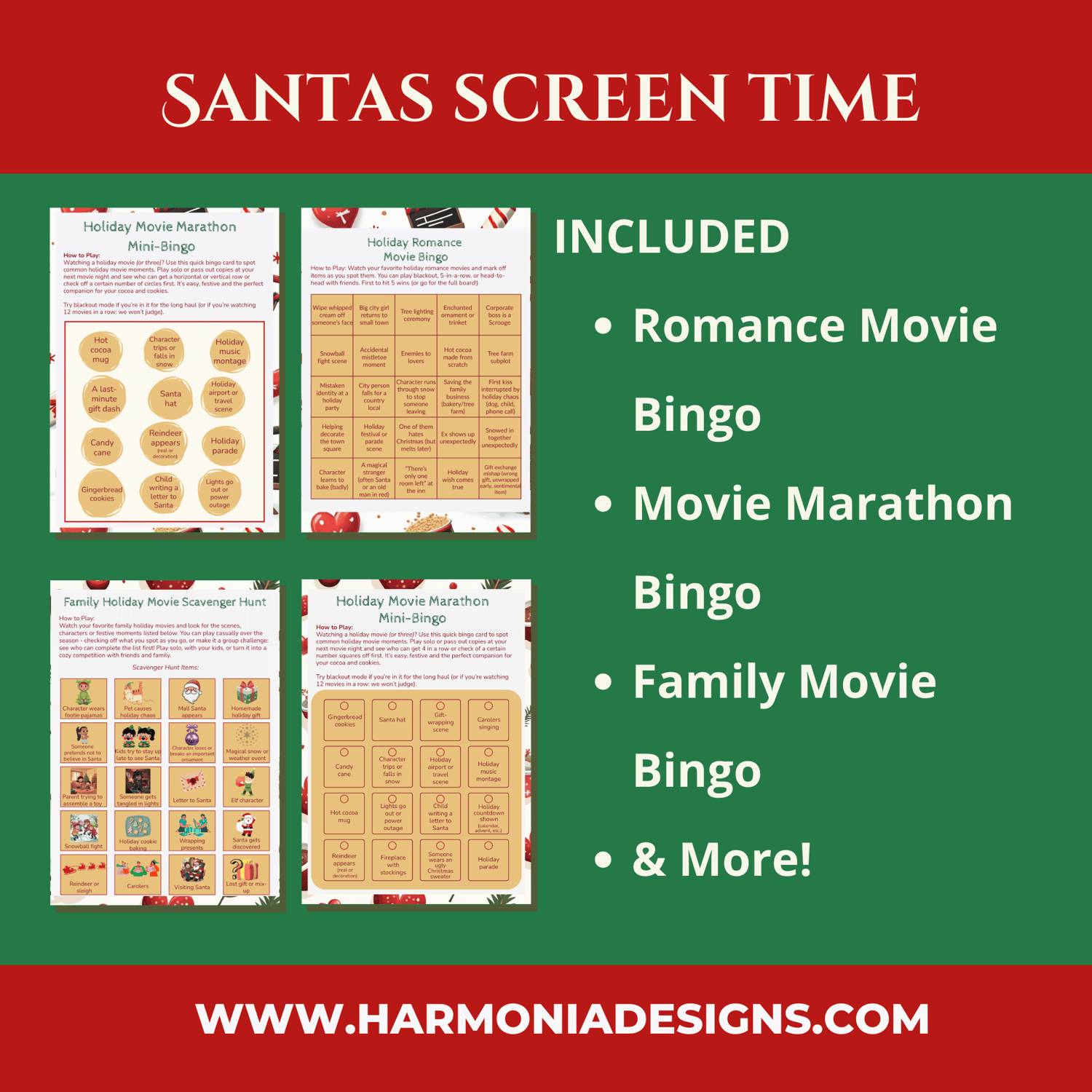 Santa’s Screen-Time Challenge Pack – Holiday Movie Bingo Set