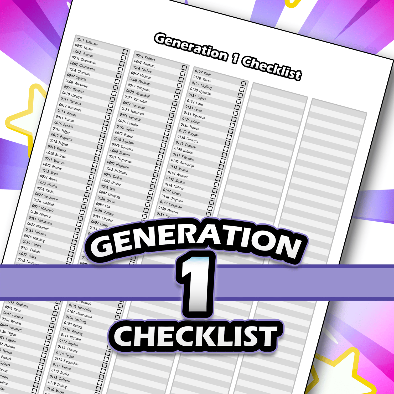 This is a FREE checklist for a Master set of Generation 1
