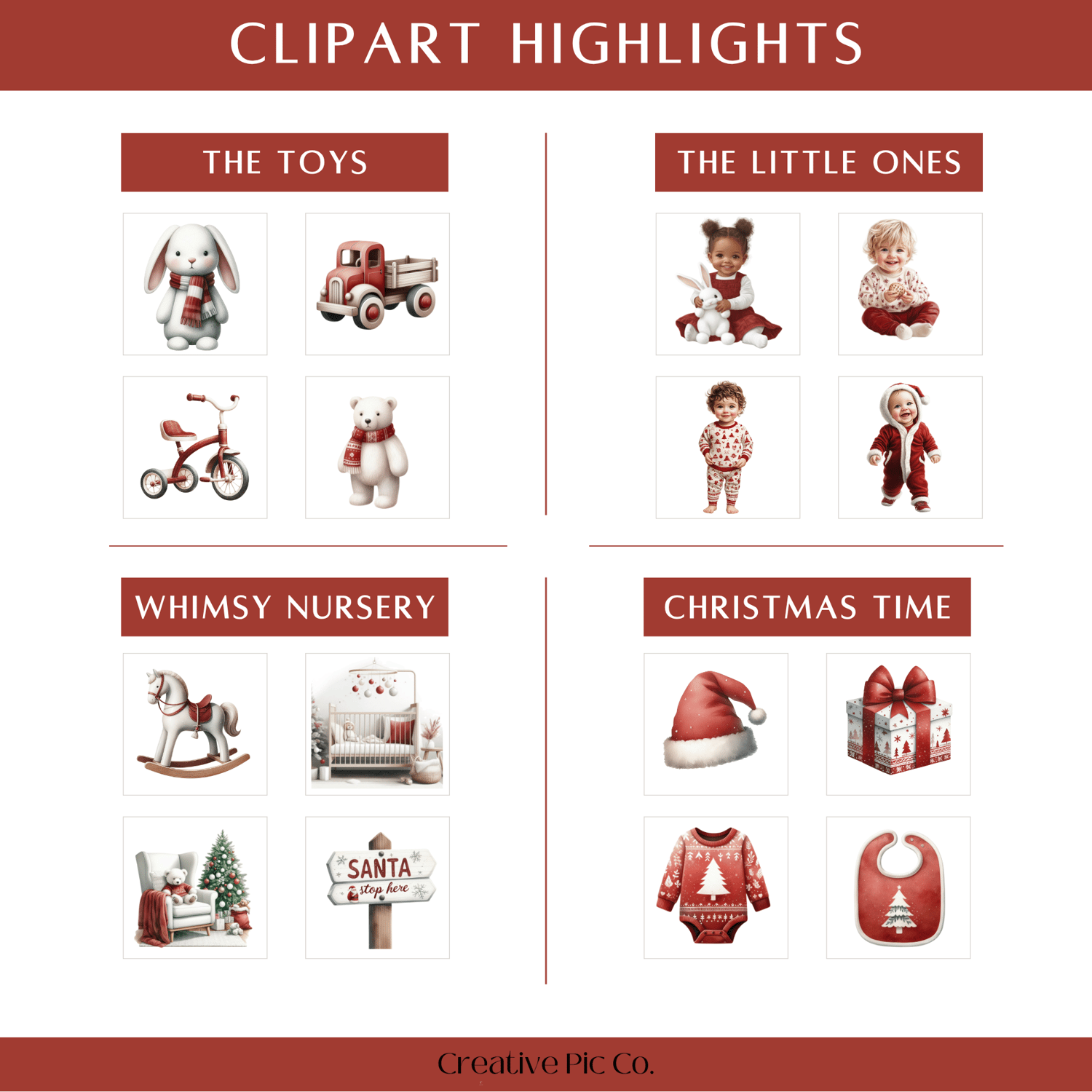 Celebrate the magic of a child’s Christmas with this heartwarming clipart collection. Featuring little ones in festive outfits, nursery scenes, holiday toys, and cosy seasonal touches, this 36-piece set is perfect for bringing gentle joy and nostalgia to your Christmas designs.