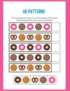 "Kindergarten patterns workbook" is designed to help young children develop their understanding of basic patterns and sequencing. It typically contains a variety of engaging and colorful activities that are suitable for children around 4 to 6 years old. The workbook may include exercises such as identifying, extending, and creating patterns using shapes, colors, numbers, and simple objects.