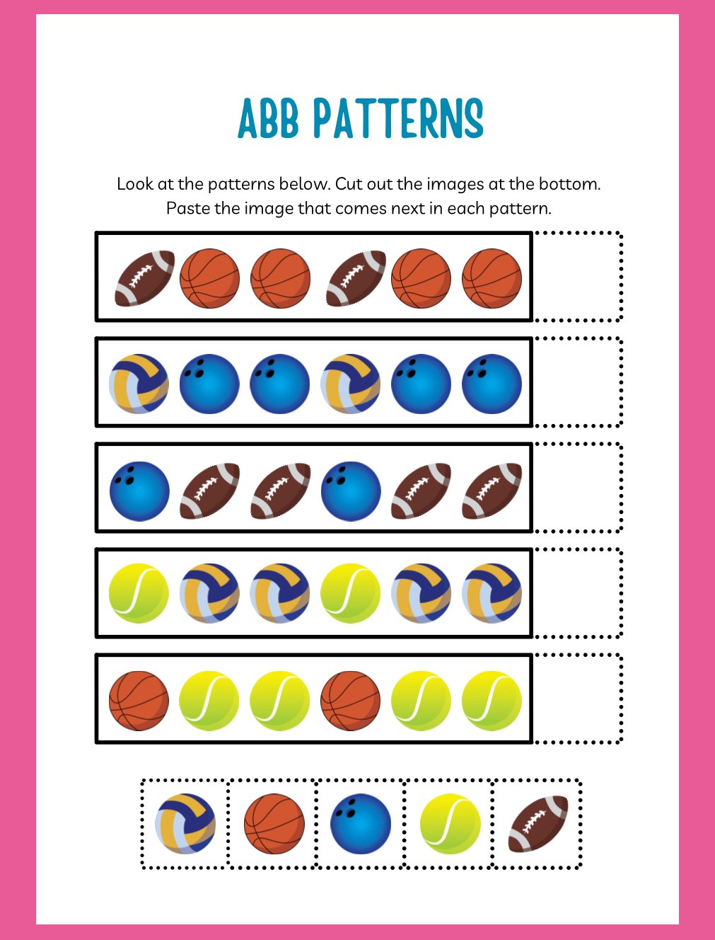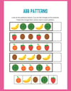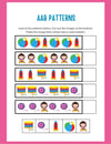 This workbook features activities to reinforce pattern recognition skills. It includes exercises where children are asked to continue a given pattern and identify patterns in everyday objects.