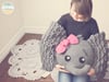 • Bernat Super Value Yarn; Weight category: 4 / Medium / Worsted; Qty: 2½ skeins of Lilac or any shade of Gray, ½ skein of any color for bow - optional, a small amount of Black & White