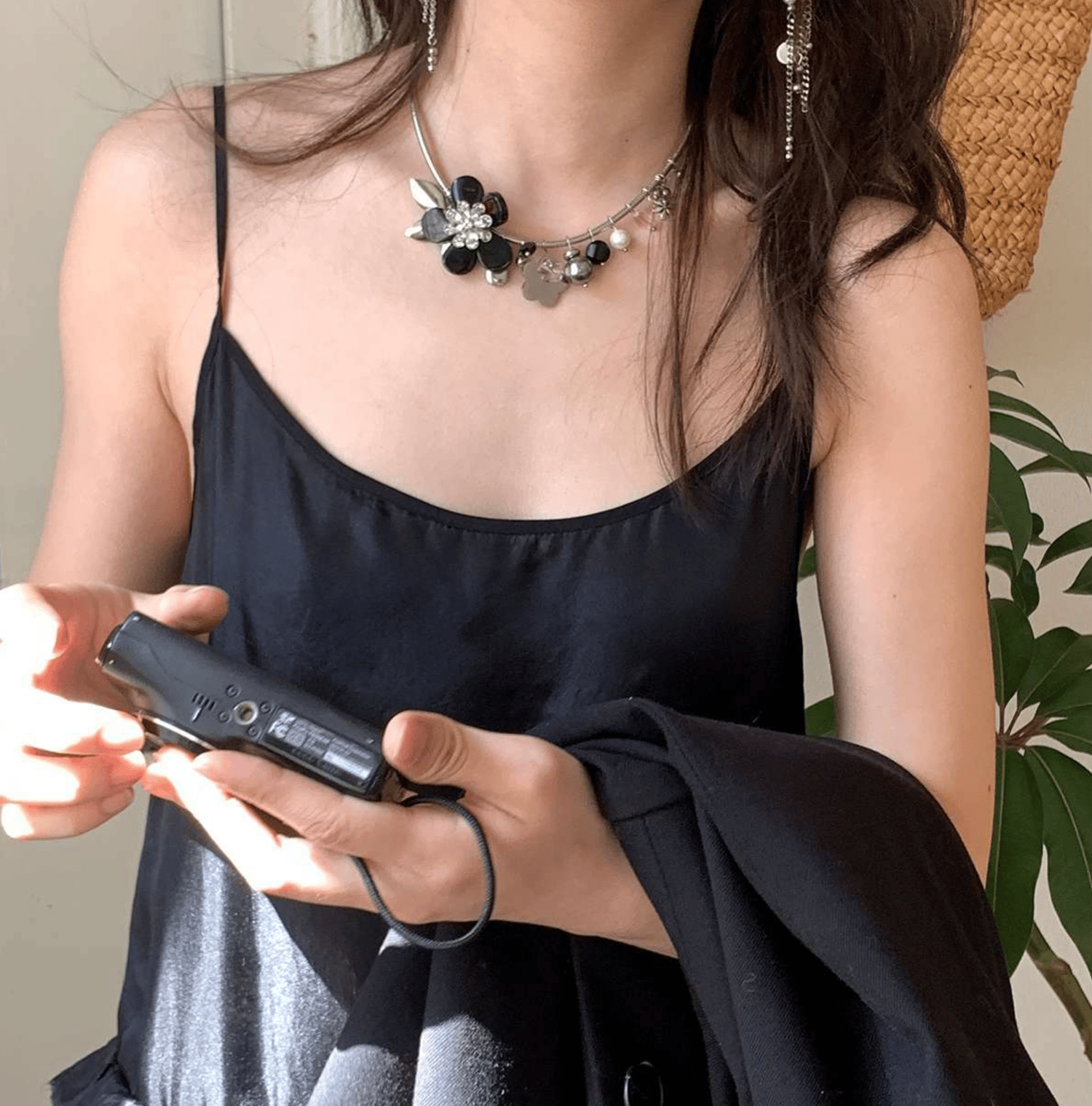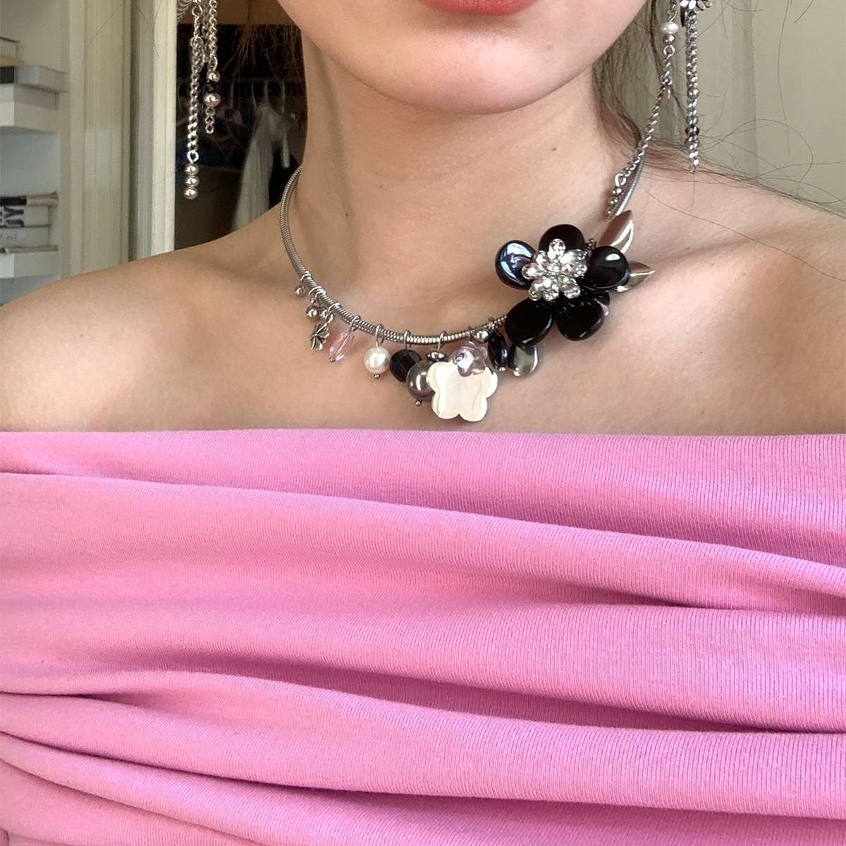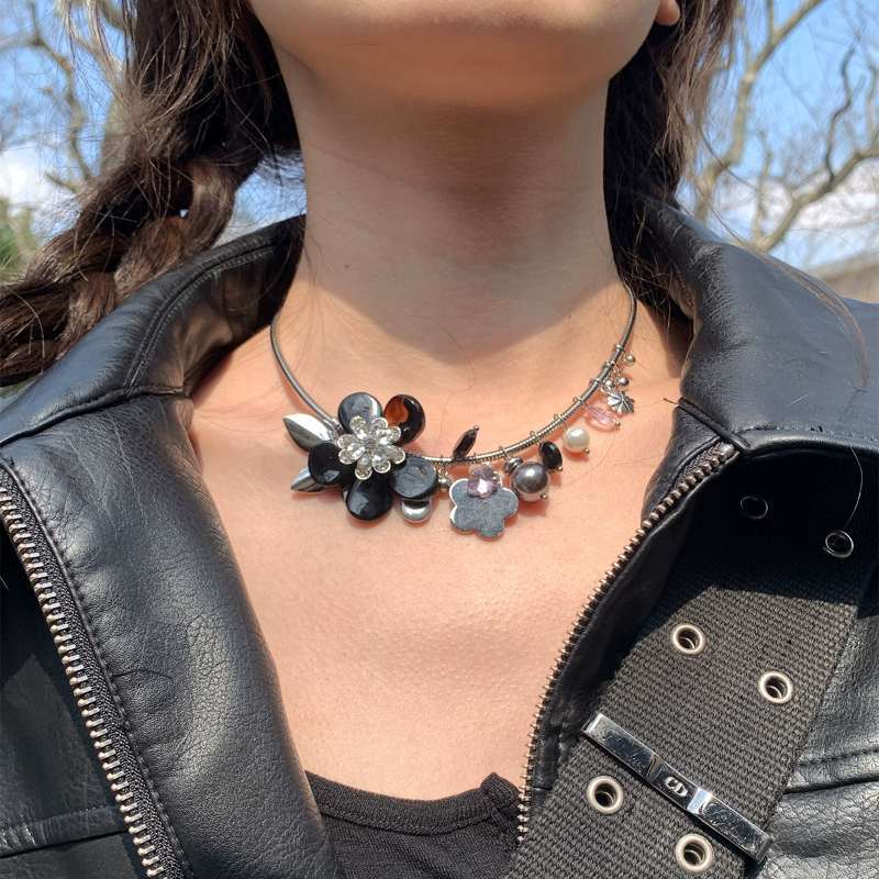 The name of this necklace is: "Romantic Night". The sweetness of the dark style, the layering of metallic mixed elements, is both cold and personality, soft and strong, lovely and calm.