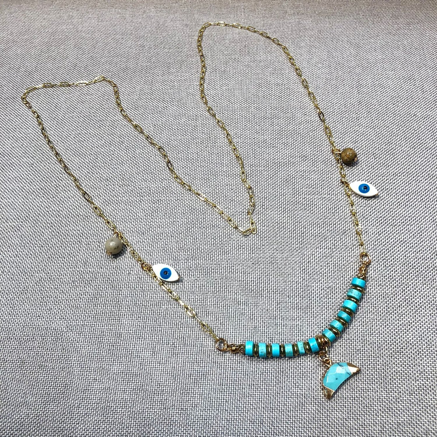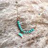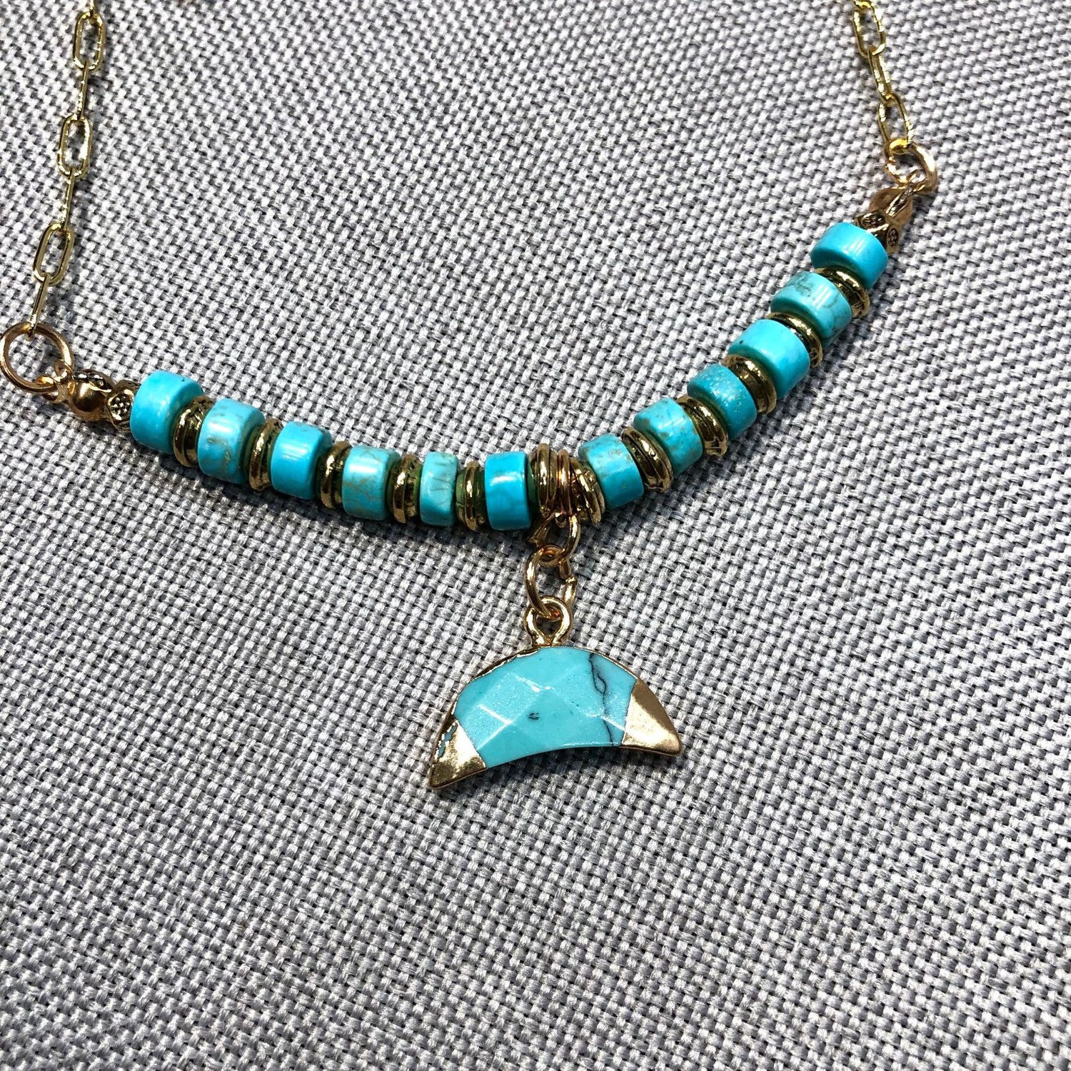 Vintage boho handmade chain turquoise crescent pendant long necklace