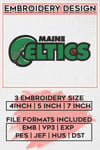 NBA G League Maine Celtics Team Writing Logo Embroidery Designs, NBA G League Maine Celtics Logo Machine Embroidery Files, NBA G League Basketball Team Logo embroidery designs, NBA G League Celtics, Digital Download