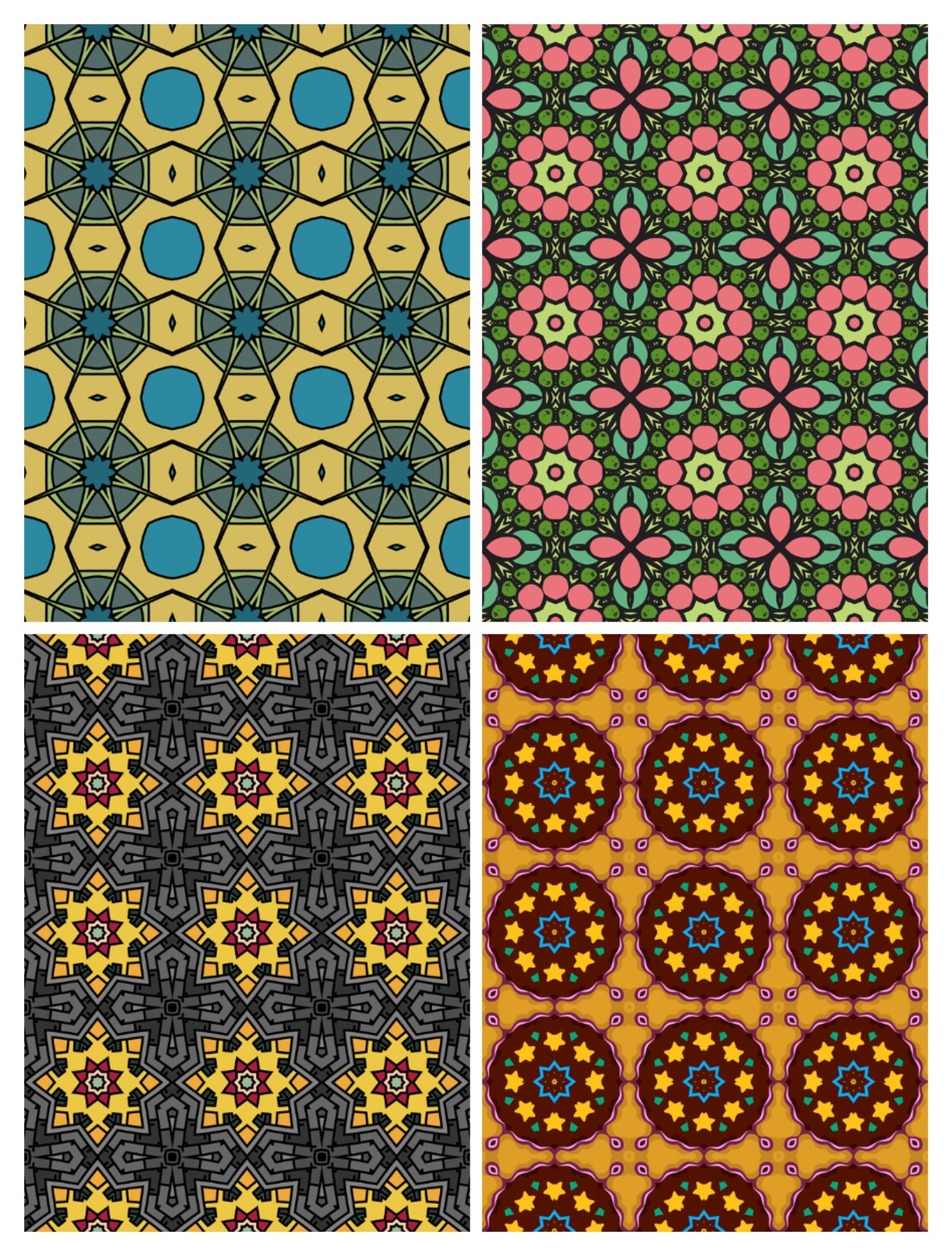 Brighten up your computer screen with this Digital Wallpaper Pack, featuring four bold geometric designs full of color, rhythm, and visual interest. These seamless patterns are ideal for desktop backgrounds, digital design projects, mood boards, or any space that could use a little energy and structure.