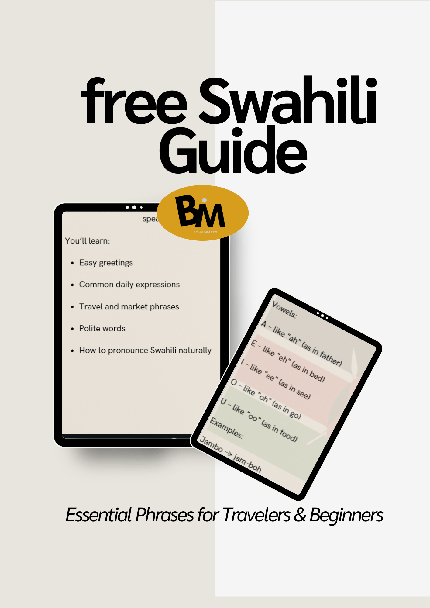 Perfect for beginners, travelers, or anyone curious about Swahili. Learn how to introduce yourself, ask for directions, order food, and more all in one handy guide.