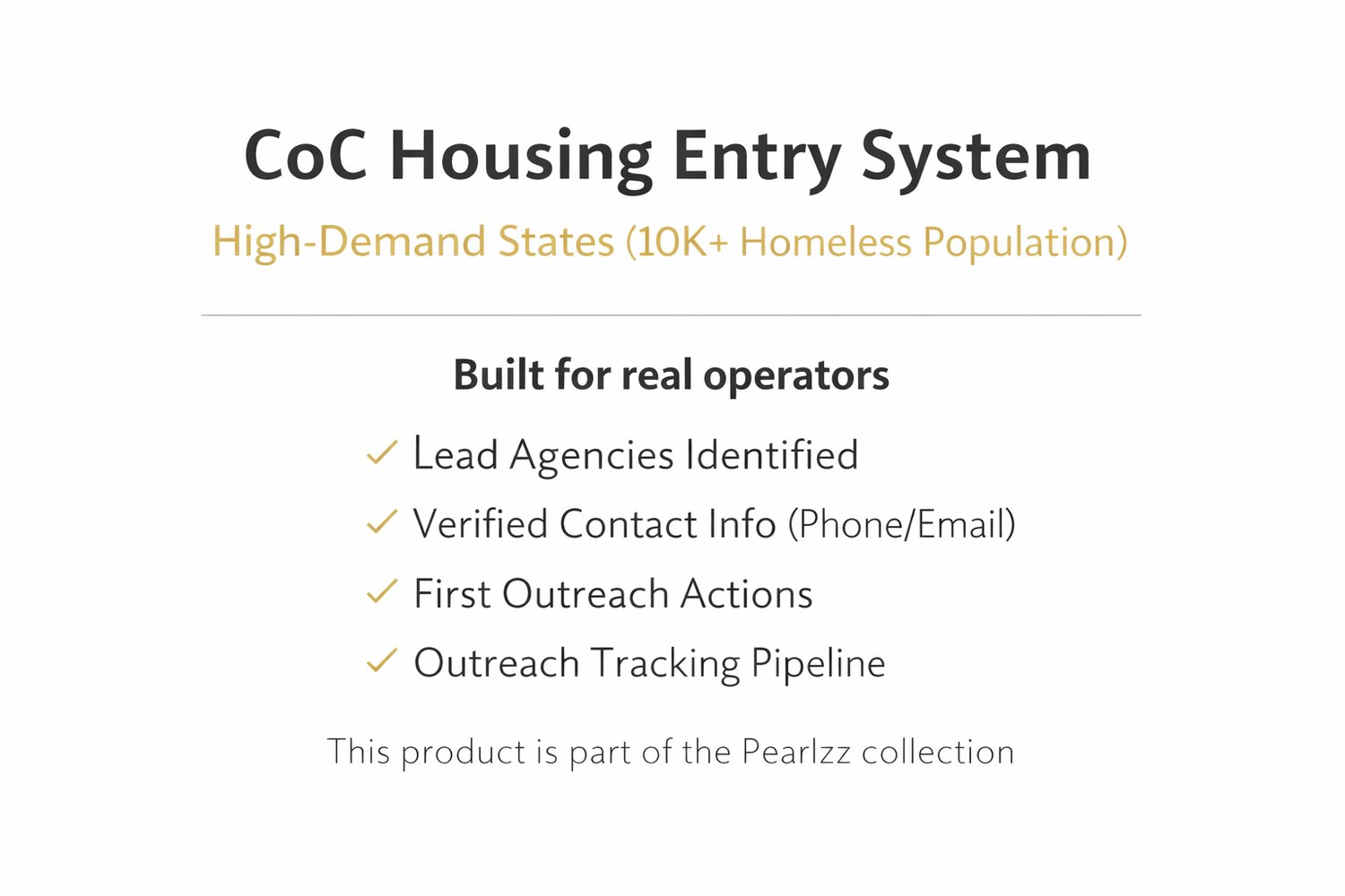 This system is designed for housing providers looking to connect directly with Continuum of Care (CoC) lead agencies in high-demand U.S. markets.