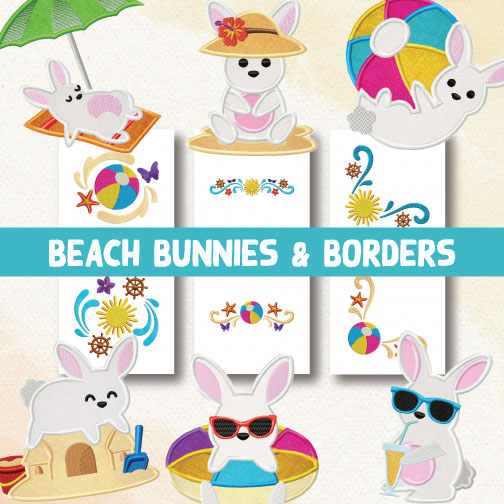 Machine embroidery design bundle, beach bunnies and borders, INSTANT DOWNLOAD