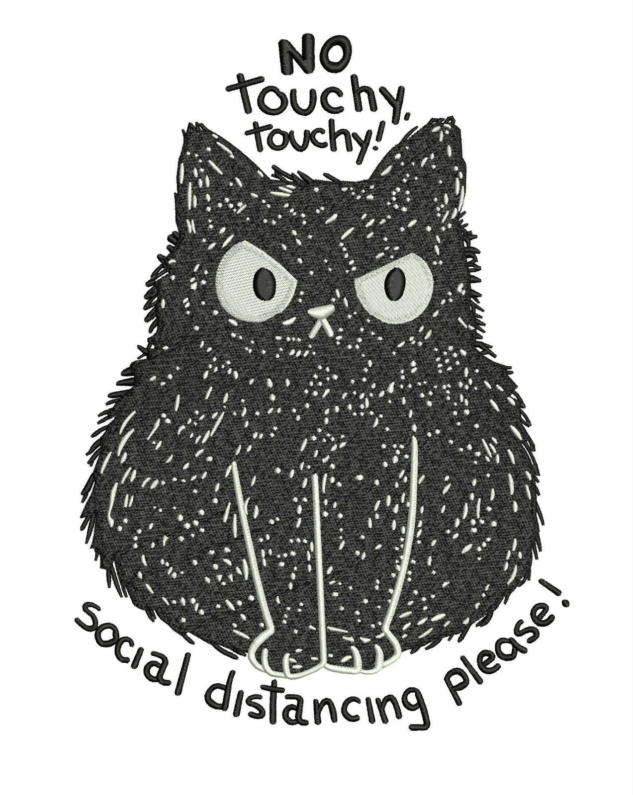 No Touchy Touchy Embroidery Design – Funny Cat Social Distancing Pattern – Digital Download