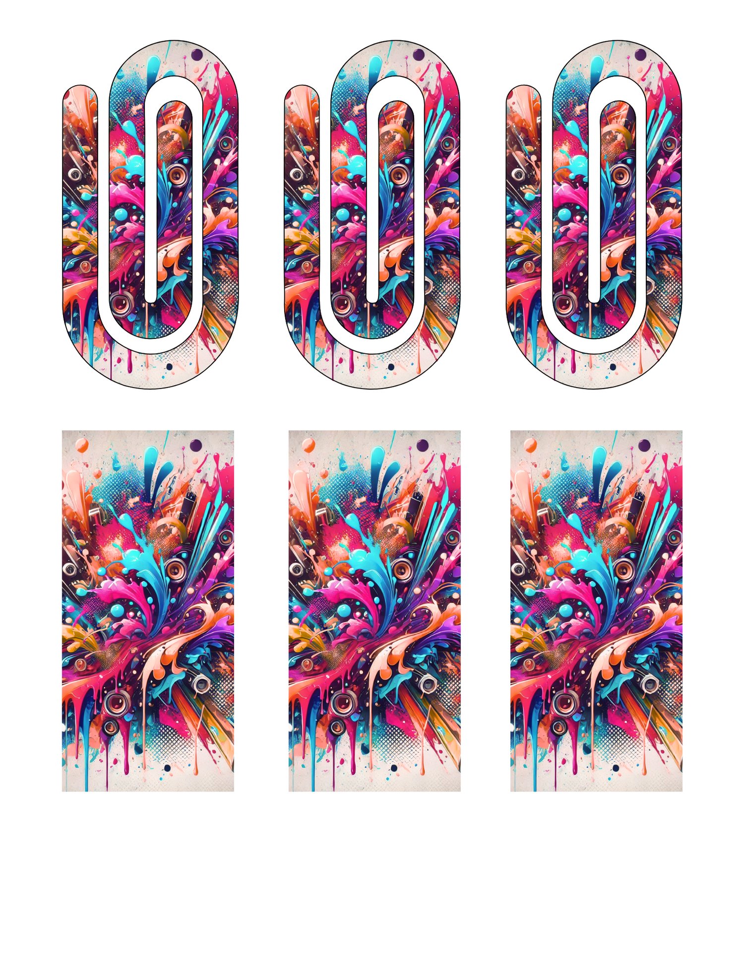 Create bold, beautiful paperclip and bookmark accessories with this easy-to-use sublimation design set! Each page features three trendy designs, with two formats per design: a paperclip shape and a matching rectangle—both sized at 2x4 inches. These designs are perfect for sublimatable blanks and are arranged so you can use them as a front-and-back pair or press them separately on individual clips or bookmarks.