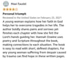 Since childhood, Hannah Oswine loved to sing, dance, write songs and poems, play piano, and collect music. She dreamed of sharing her interests professionally. But at age nineteen, part of her soul was silenced. In Poetically, Therapeutically, Spiritually, Dancing Your Way Out of Despair, she tells an intimate and revealing story of how a frightening and traumatic experience, coupled with many other painful tragedies, sent her into deep despair.