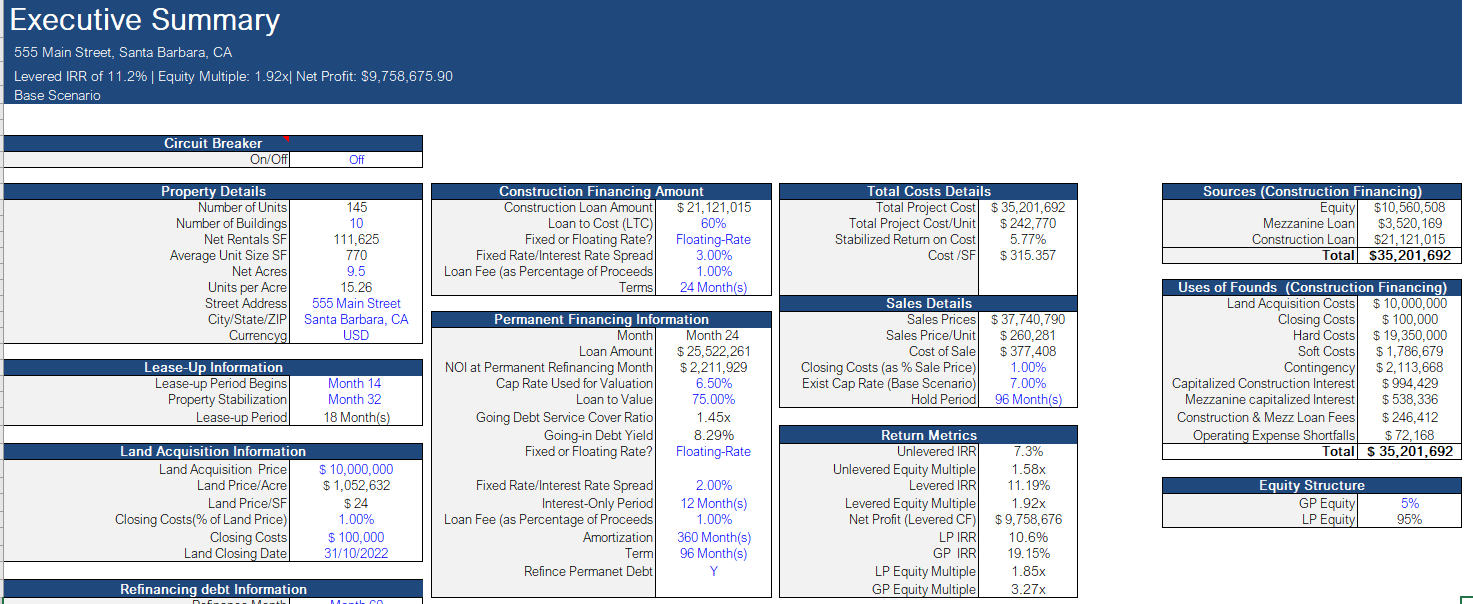 This template is a fully functional, institutional quality, and dynamic real estate Development Financial Model. It’s a powerful yet very user-friendly model that will provide the user with a detailed Excel spreadsheet in which the viability of an investment in a multi-family real estate property can be accessed accurately.
