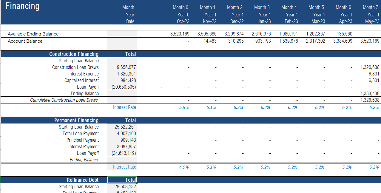Capital Stack: Development debt financing is drawn and repaid as follows: