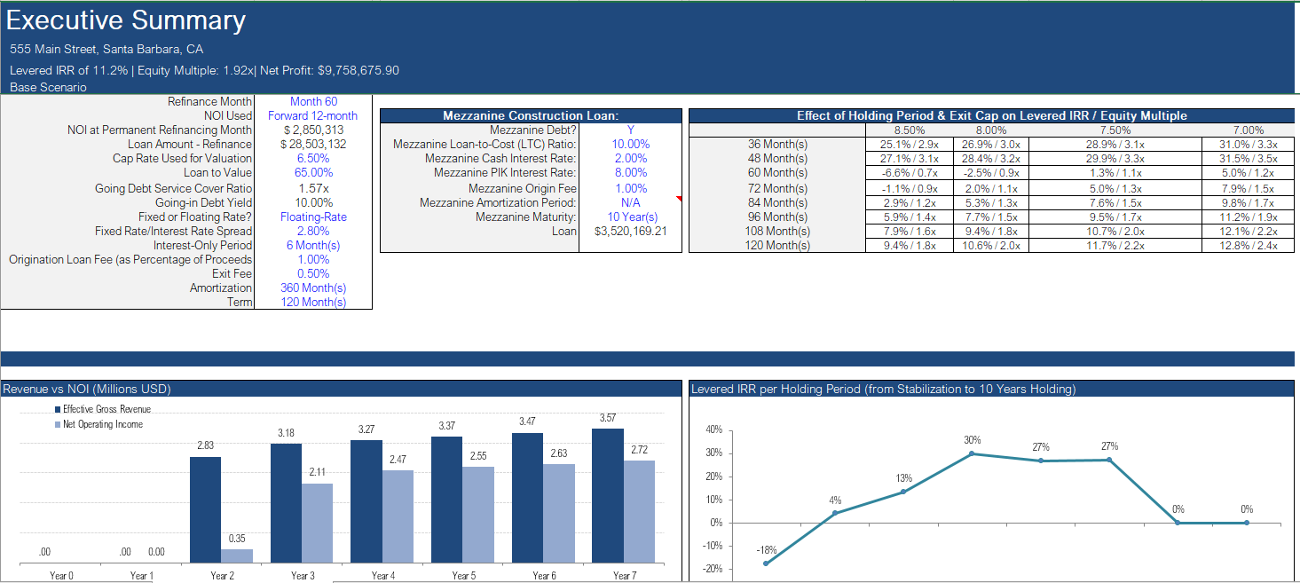 •The investment summary sheet provides an overview of the property based on several key metrics and assumptions.
