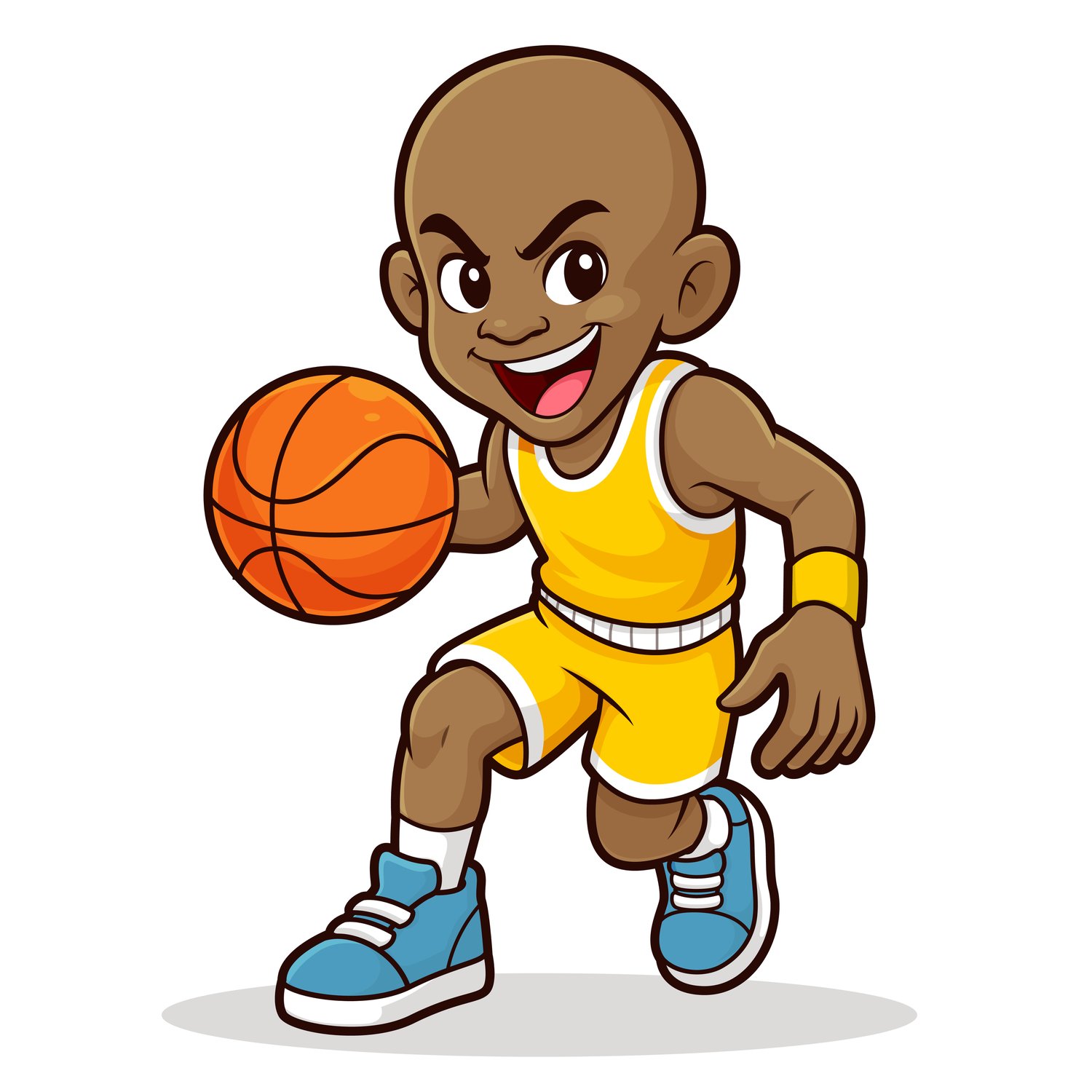 cartoon American basketball player dribbling illustration
