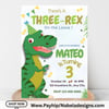 Get ready to ROAR into a dino-mite celebration with this Three Rex Birthday Invitation for boys! 🦖💚 Perfect for a fun dinosaur-themed 3rd birthday, this invitation features bold dino designs in green and blue tones that boys love.