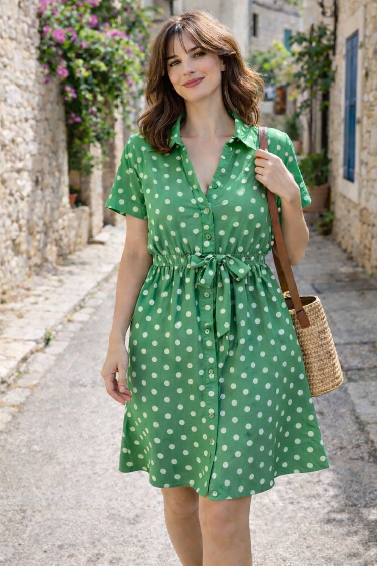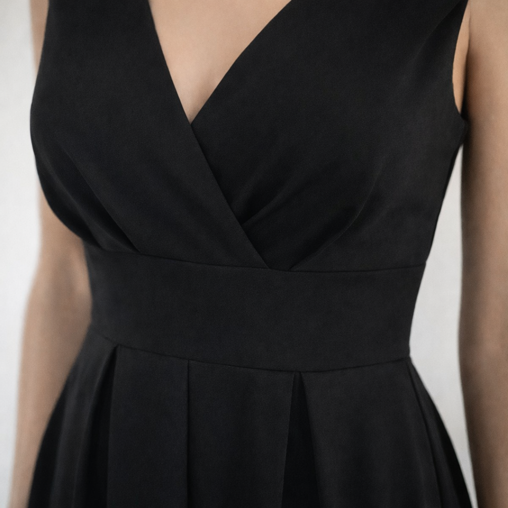 Sa coupe féminine marque joliment la taille et son décolleté croisé reste élégant sans être trop plongeant.