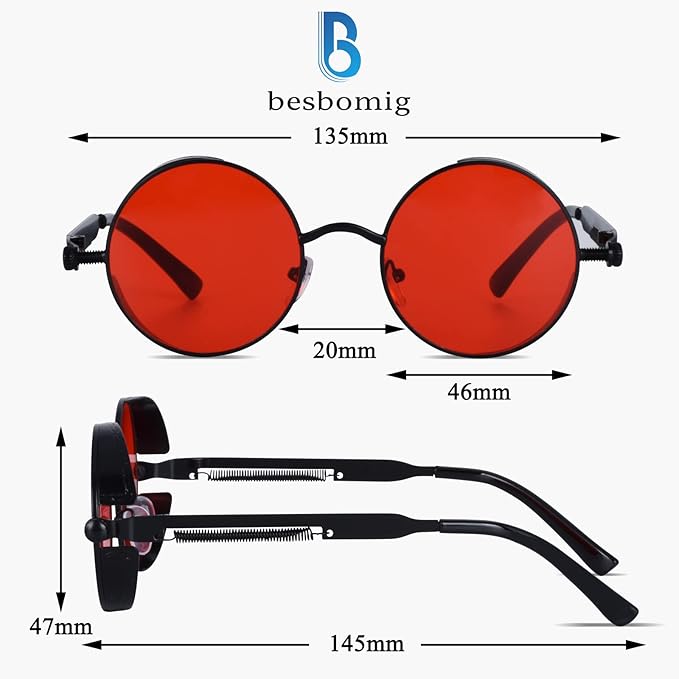 - These trendy round steampunk sunglasses are well-packaged with a solid glasses case, absolutely a wonderful gift for family, friends and lovers.