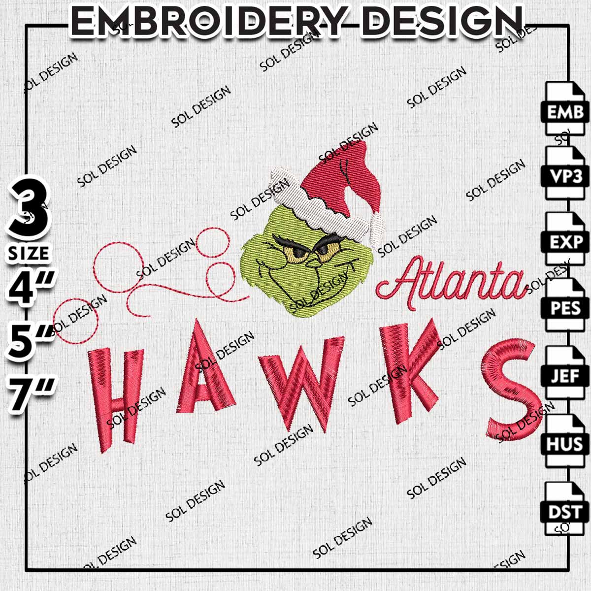 Christmas Grinch Face x Atlanta Hawks NBA Basketball Team Embroidery Designs, Grinch Embroidery Files, NBA Hawks Basketball Team Logo Embroidery, Merry Christmas Machine Embroidery Design, Digital Download