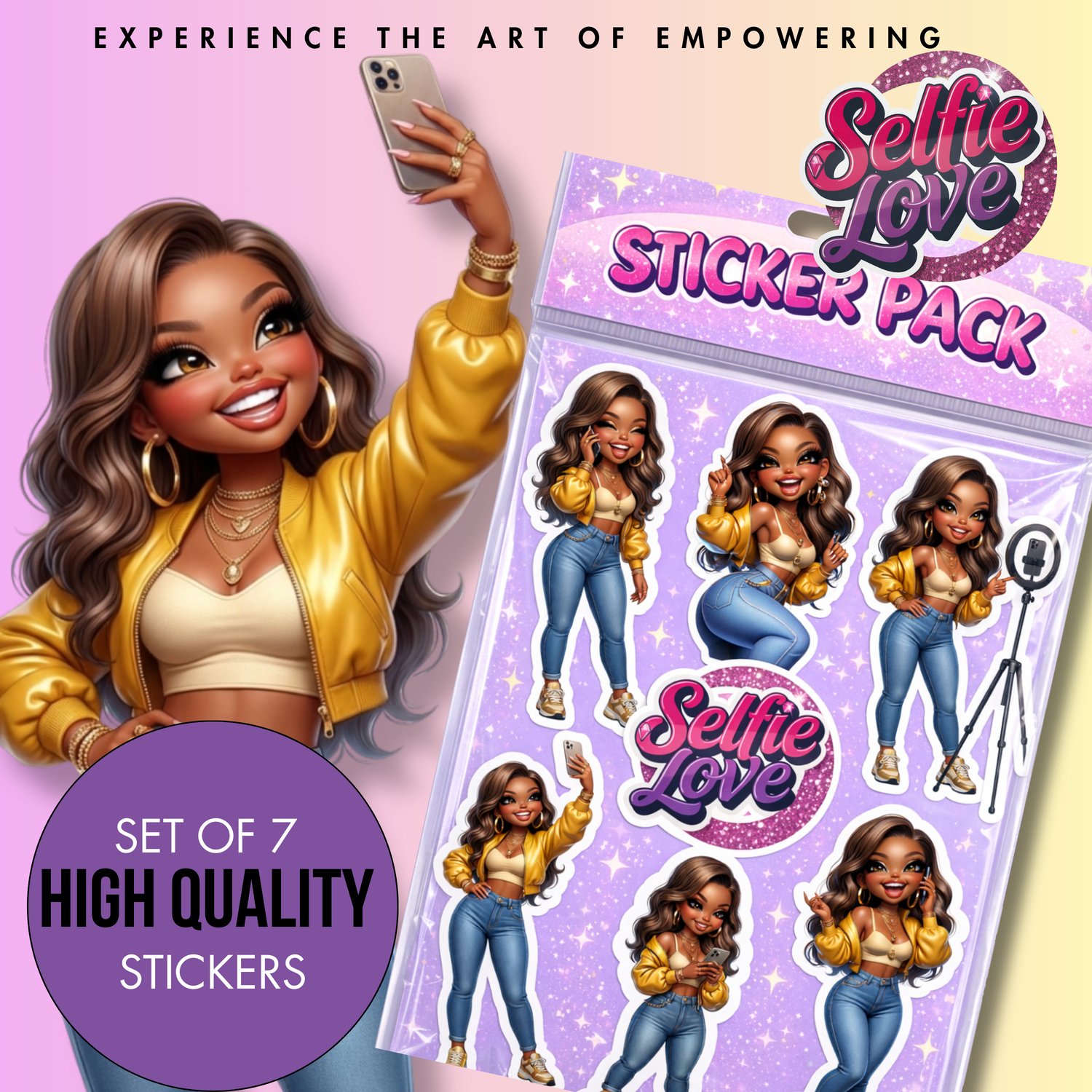 - π Features a confident, stylish girl character in multiple cute selfie poses