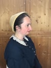 Le petit bonnet est un accessoire emblématique du milieu du XIXᵉ siècle, porté au quotidien comme lors des sorties civiles.