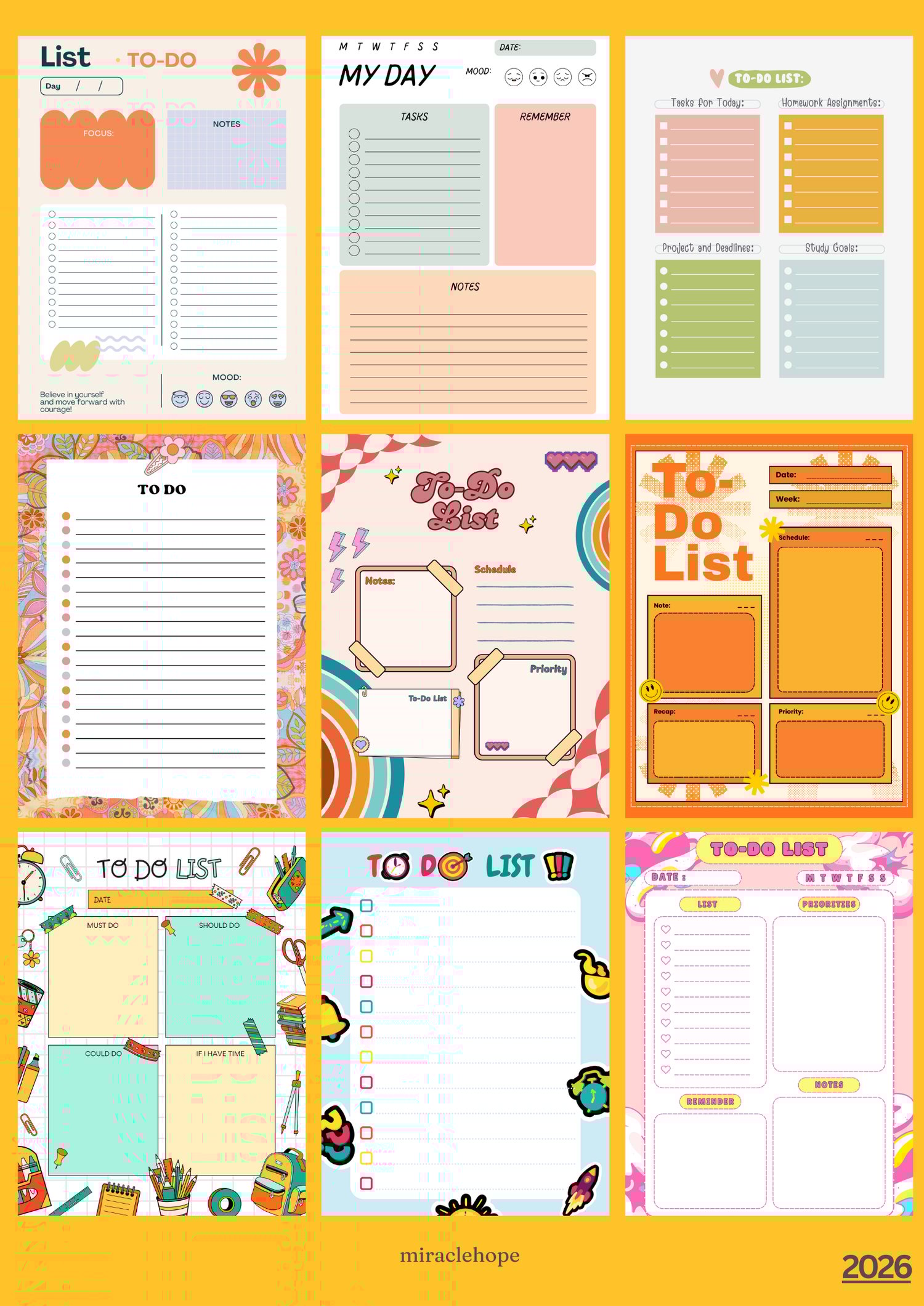 To-do-List is a practical tool designed to help, manage daily tasks in one place. It helps improve productivity, time management, and decision-making by providing structured layouts for planning, tracking progress, and ideas.