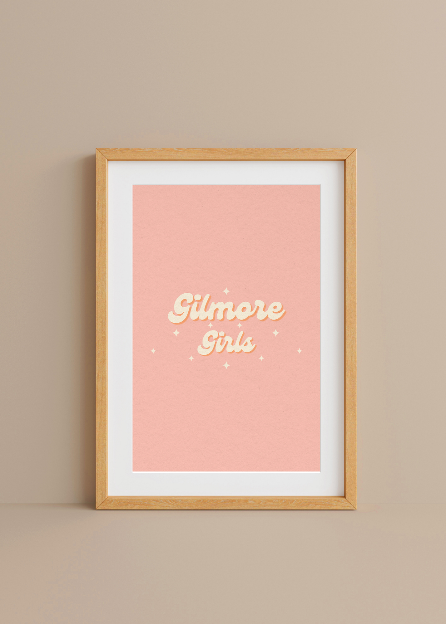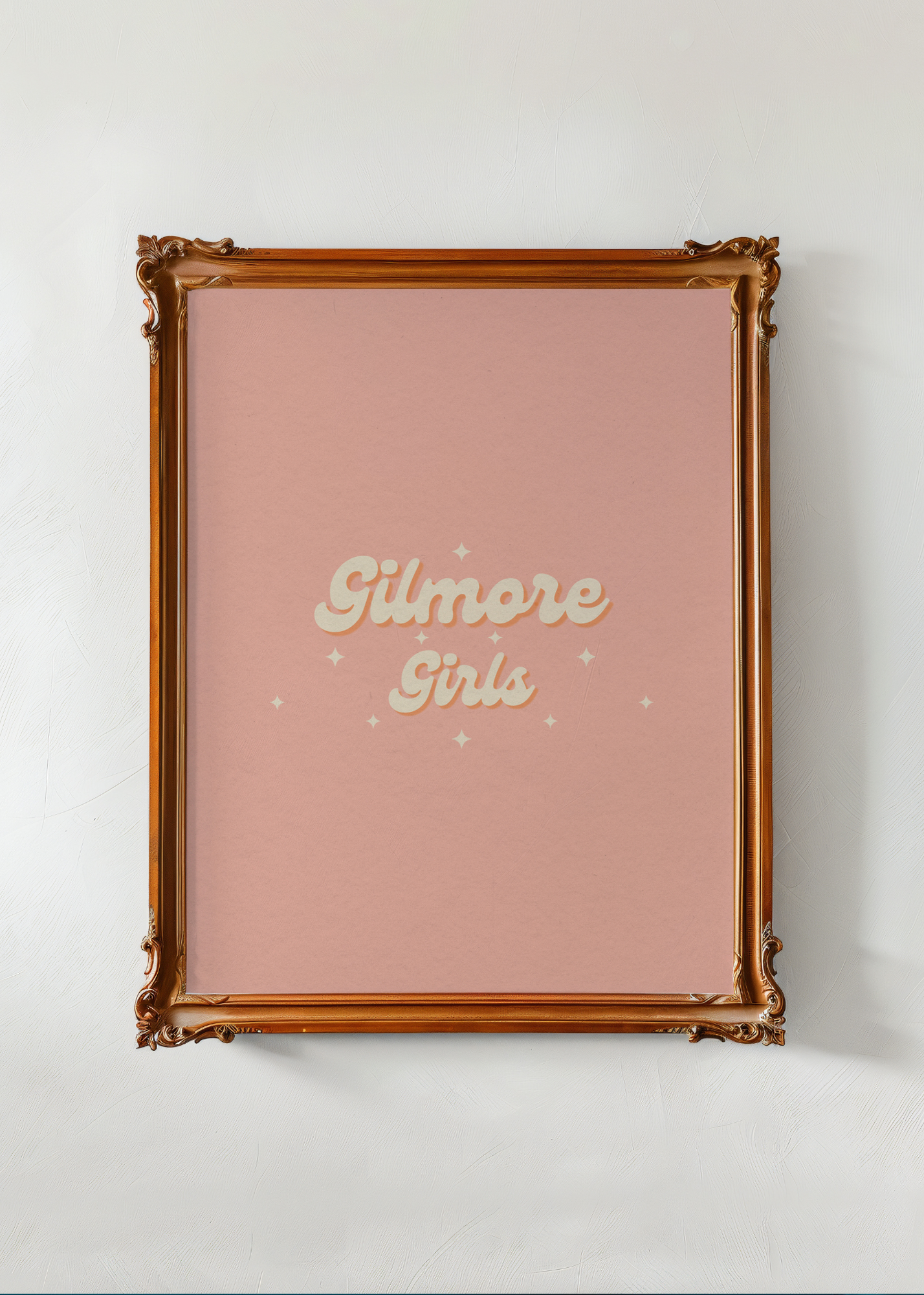 Gilmore Girls, Light Pink— A playful nod to a beloved world, this original piece brings the spirit of Gilmore Girls to life in a burst of color and charm. Set against a bright, cheerful backdrop, the iconic words shine in a fun, modern font—simple, bold, and full of heart. Whether it evokes cozy nights, fast-talking scenes, or small-town magic, this design offers a vibrant tribute to the stories we return to again and again. Available in a variety of joyful hues to suit every mood.