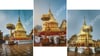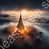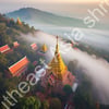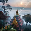 Wat Phra That in Southeast Asia shrouded in morning fog