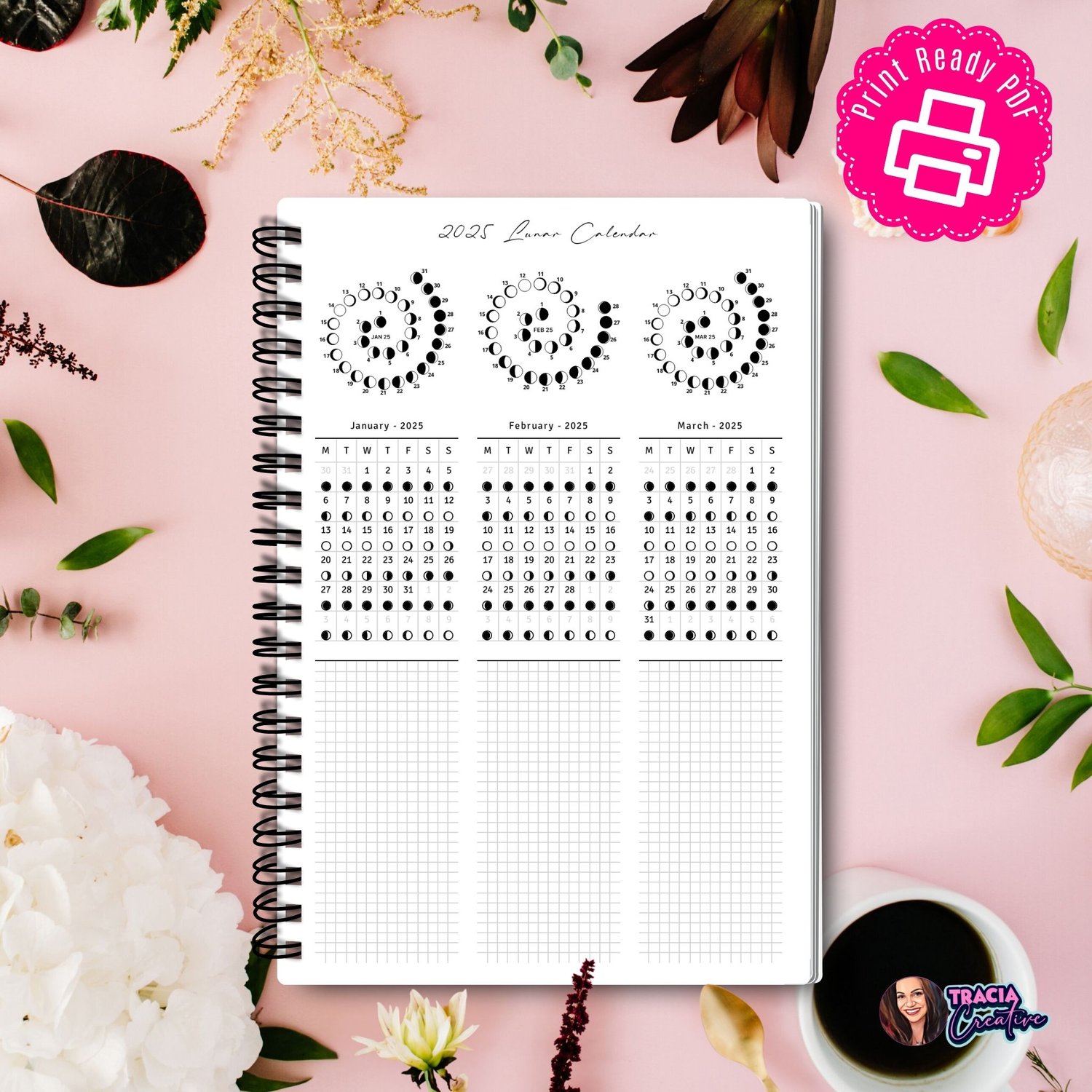 Are you looking to stay connected with the lunar cycle while keeping track of important personal notes? Our 2025 Lunar Calendar with Notes is the perfect tool for you. This printable digital download allows you to easily mark significant dates and jot down observations or tasks, helping you stay organized and in tune with the moon’s phases.
