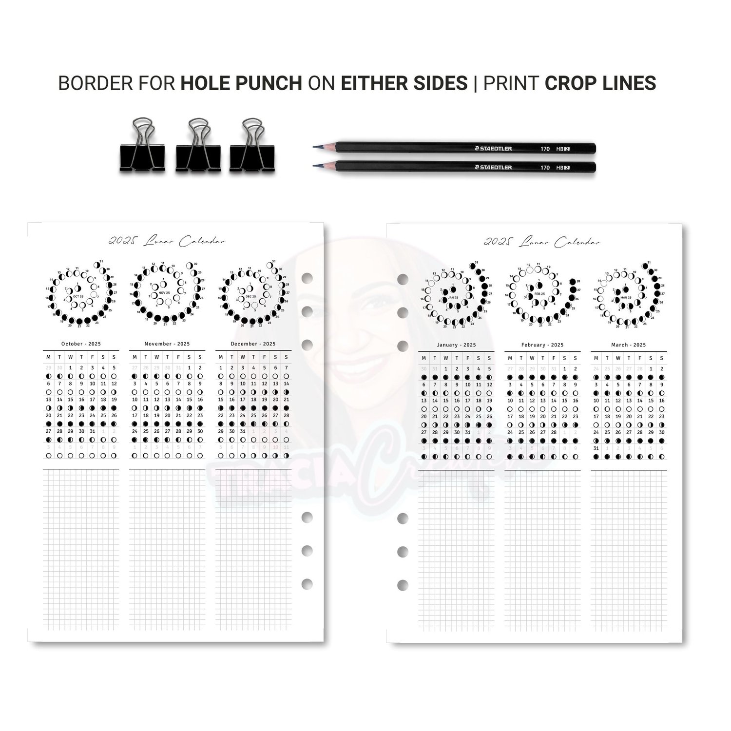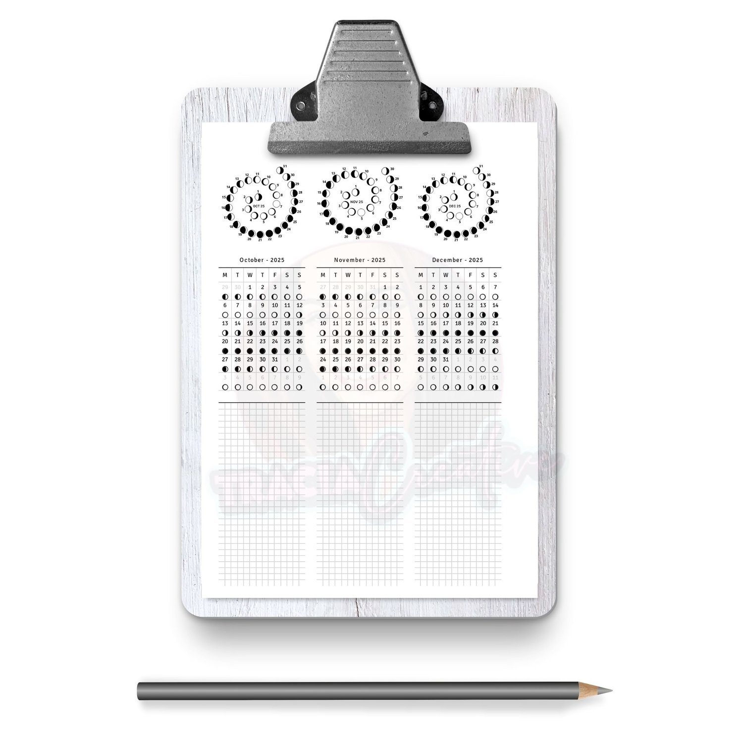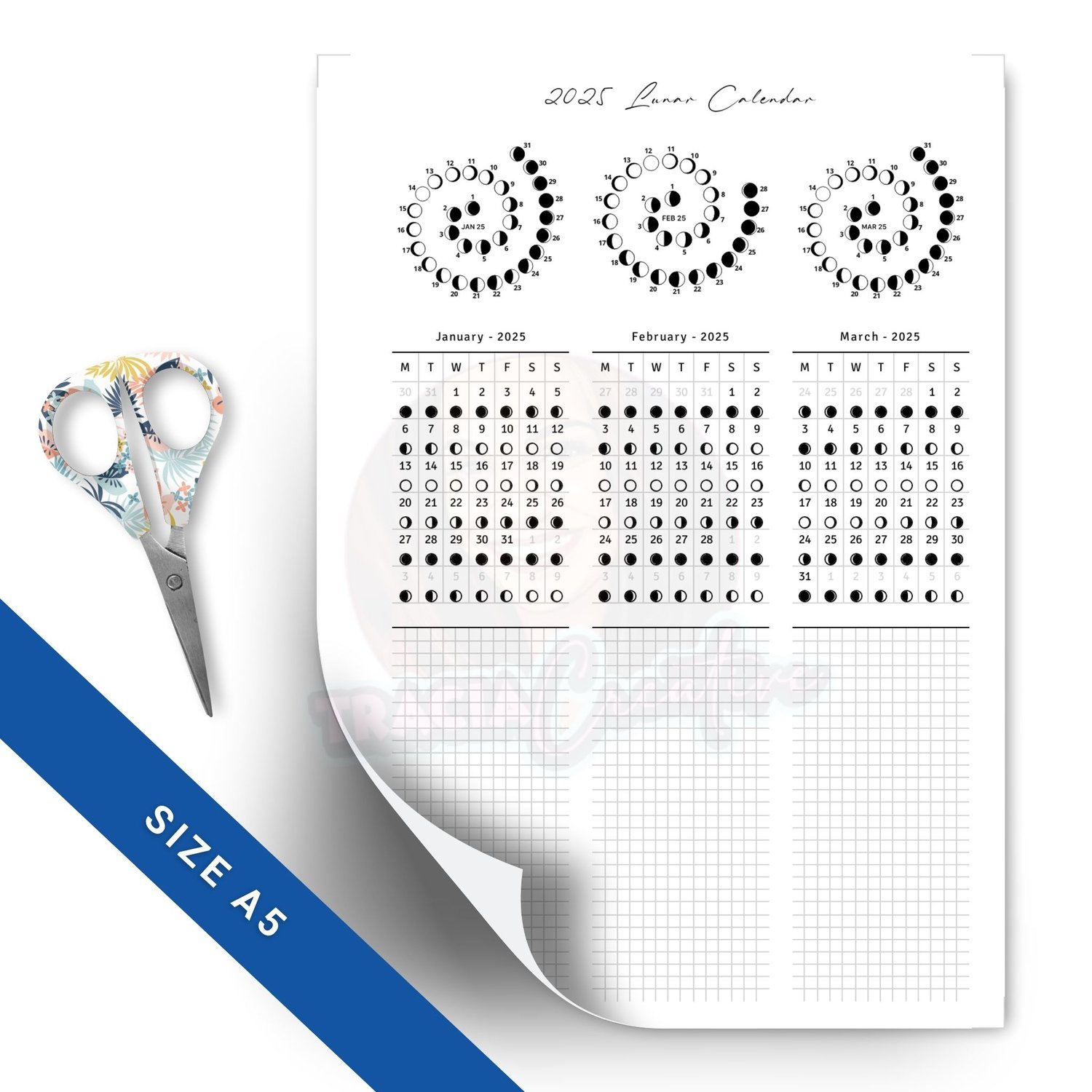 - Lunar Phase Tracking: Clearly marked lunar phases for each month help you plan activities that align with the moon’s natural rhythm.