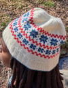 Classic Fair Isle motifs get an update in this modern, slightly slouchy beanie. Named for a character in the PBS show, Home Fires, this hat was inspired by the motifs and colors of vintage Fair Isle sweaters and vests from the 1940s.